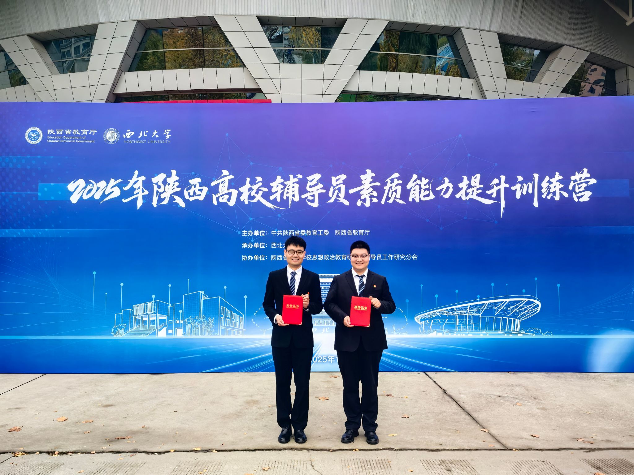 11月7日,由中共陕西省委教育工委、陕西省教育厅主办的2025年陕西高校辅导员素质能力提升训练营在西北大学长安校区举行。经过激烈角逐,c7网页版运输学院辅导员李永春、能电学院辅导员刘泽从来自全省90余所高校的135名参训辅导员中脱颖而出,双双荣获“业务标兵”称号(全省高校共9人),充分展现了c7网页版辅导员扎实的专业能力、过硬的综合素质和良好的精神风貌。