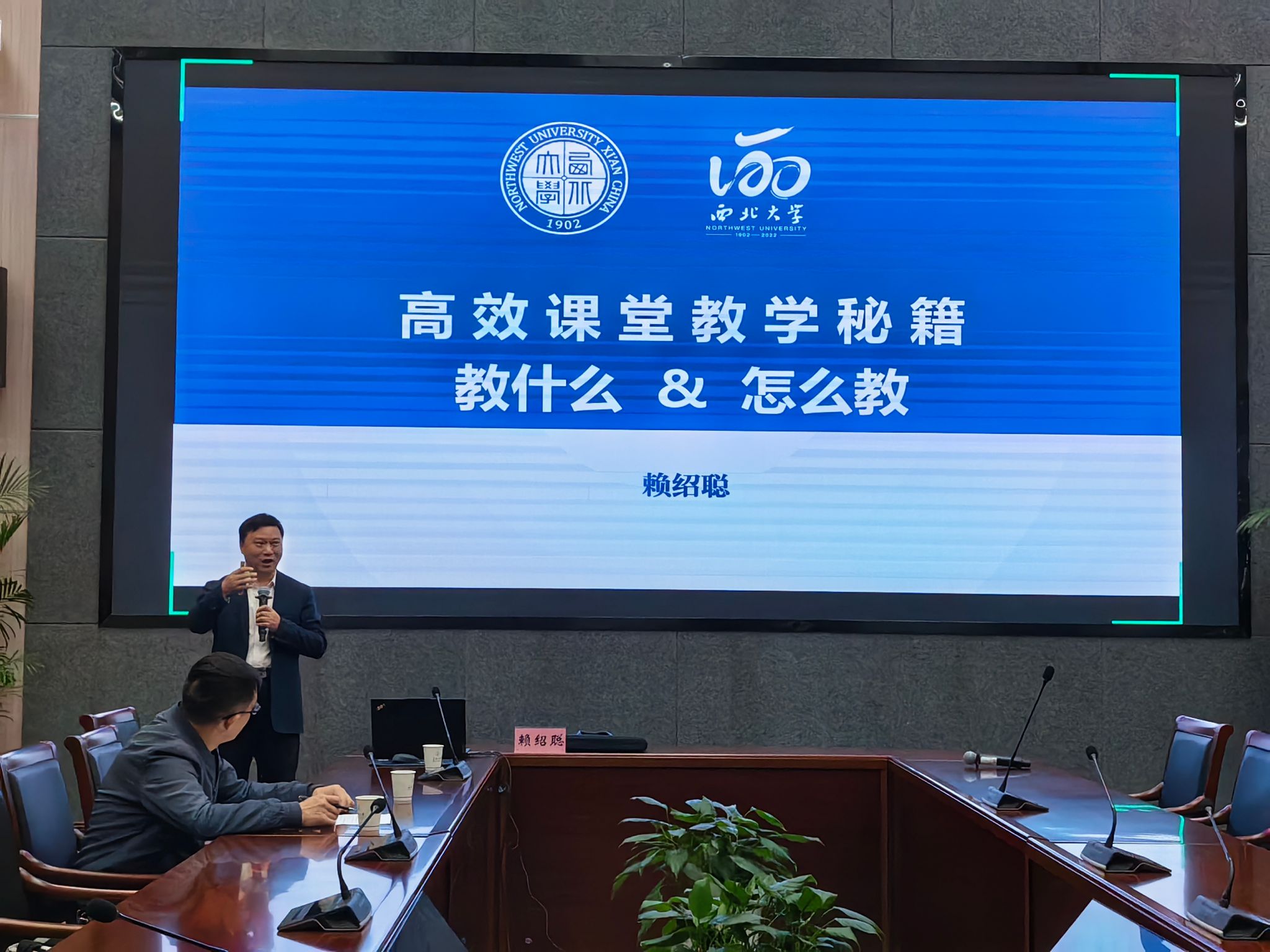 10月15日上午,首场培训以“高效课堂教学秘籍:教什么?怎么教?”为主题,特邀西北大学赖绍聪教授主讲。赖绍聪从教育教学目标、教学内容凝练、教学策略选择、教学方法优化四个方面展开,为新教师提供了兼具理论性与实操性的教学能力提升路径。他强调教育应从“知识传递”转向“主动建构”,通过“问题驱动”重构课堂,设计真实情境与探究性问题,激发学生主动学习的积极性,帮助学生提升“知识、能力、情感”三位一体的综合素养。