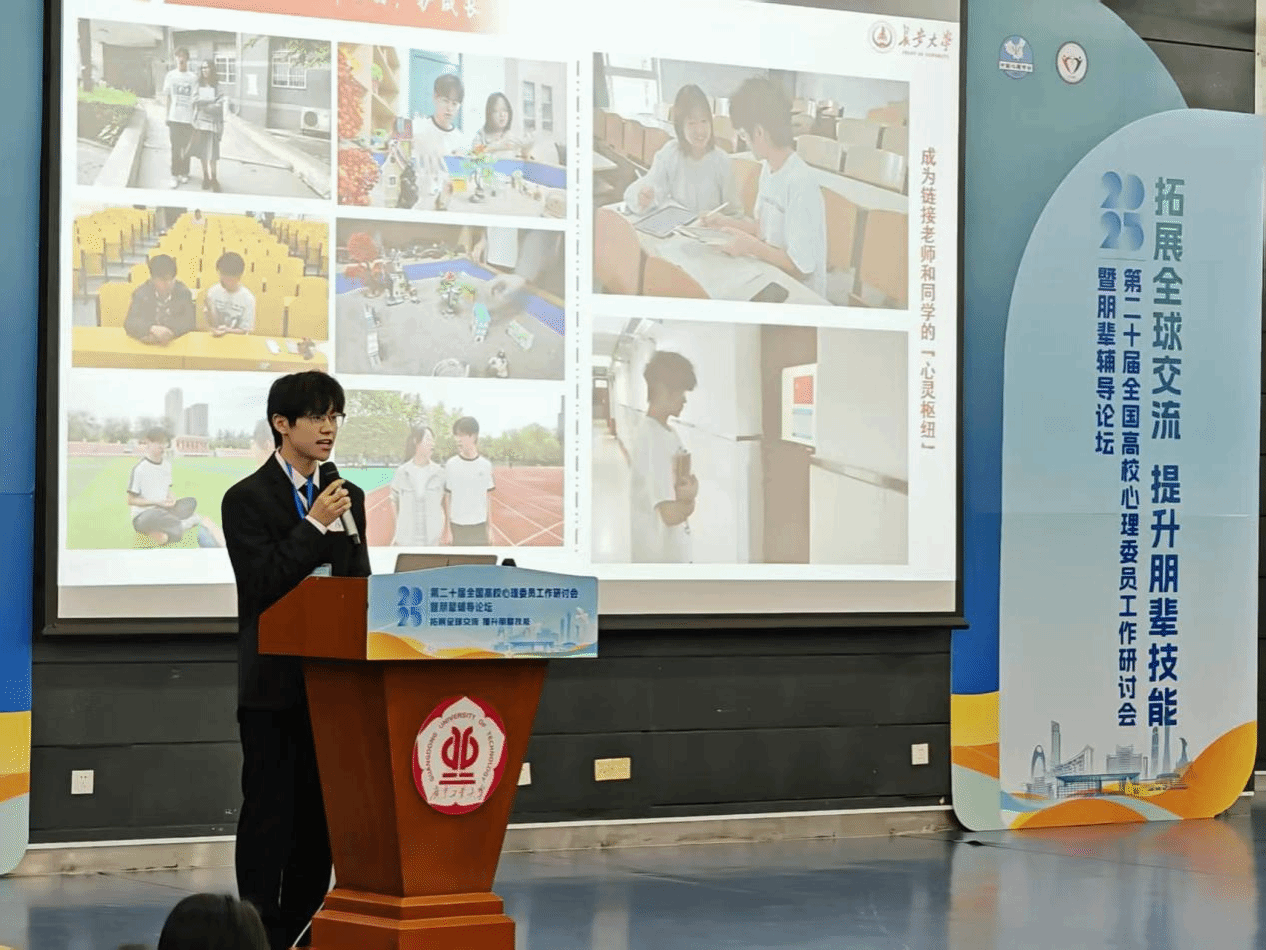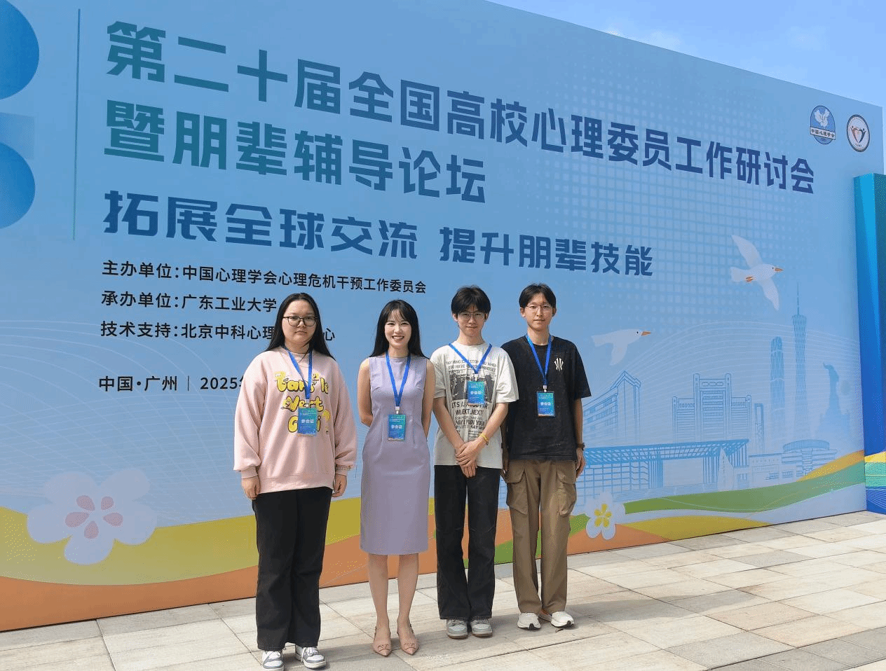 近日,由中国心理学会心理危机干预工作委员会主办的第二十届全国高校心理委员工作研讨会暨朋辈辅导论坛在广东工业大学举行。来自全国高校的267名优秀心理委员代表及国内外心理健康教育工作者等1000余人参会。c7网页版马克思主义学院梁俊辉当选为2025年全国心理委员论坛副主席,并与未来交通学院李晨露、材料学院李宸昊共同入选“全国心理委员论坛”成员,三名学生的工作事迹被收录于《全国百名心理委员风采展》。