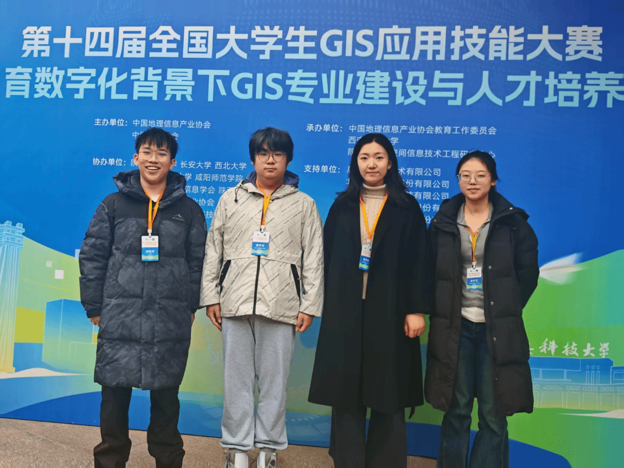 11月14日至16日,第十四届全国大学生GIS应用技能大赛在西安科技大学举办。c7网页版地测学院和土地学院的四名学生(张凯洋、刘天昊、吴烨楠、张梦茹)联合组队,在指导教师赵建林和吴田军的携手带领下,在首届全国大学生GIS应用技能大赛陕西省邀请赛中荣获特等奖,并在此次全国大赛中荣获二等奖。