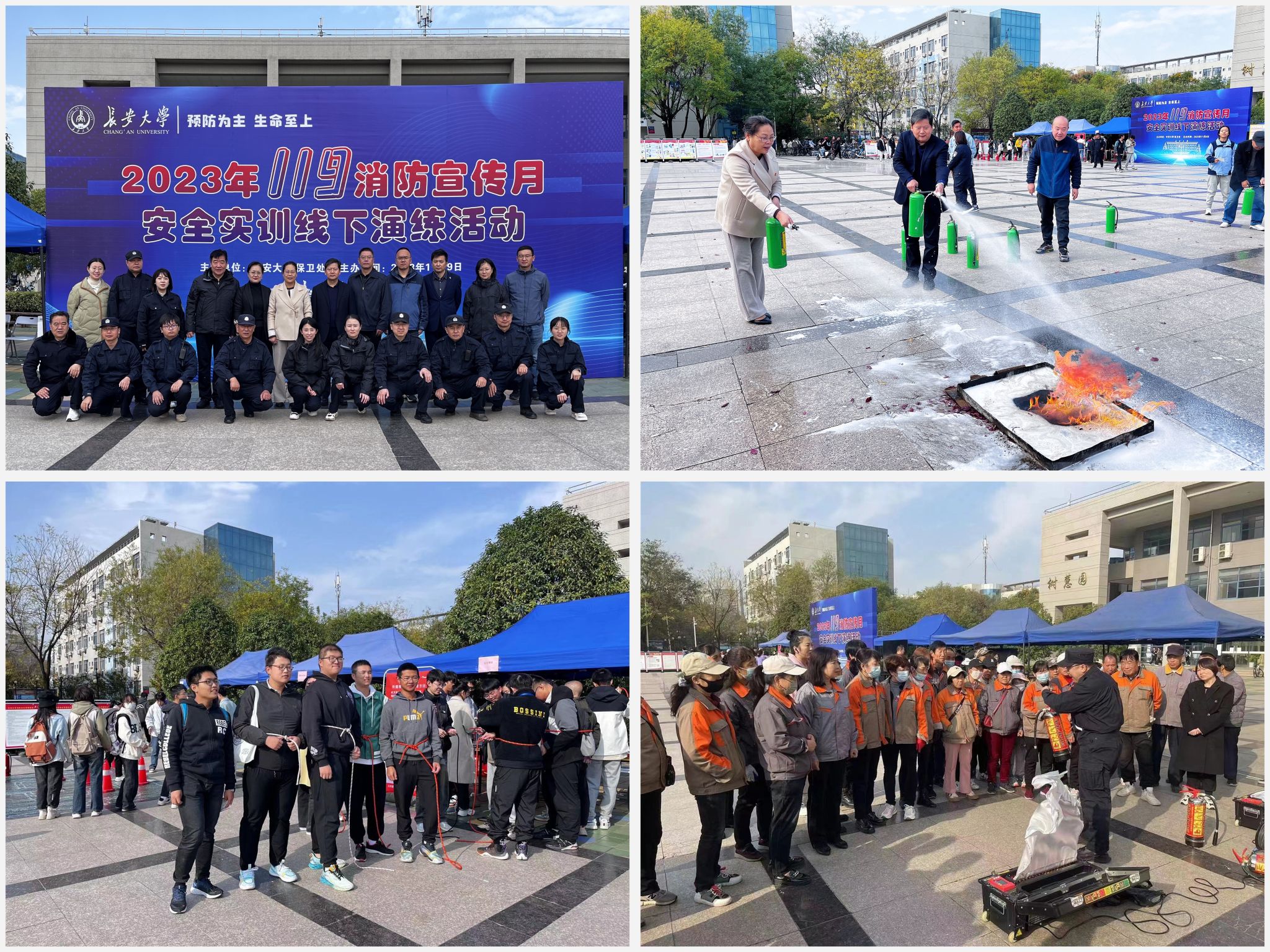 寓教于乐,开展消防实训线下活动。为切实提升师生防火意识及自防自救能力,11月9日,保卫处在北校区举办了“119”消防宣传月安全实训线下演练活动,活动设置防火安全逃生VR体验、安全绳结、安全知识竞赛、眩晕行走体验、模拟灭火实训五个主题模块,帮助师生掌握扑救初起火灾和火场疏散逃生的基本方法。