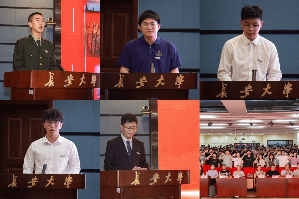 主题活动共分为理想信念教育、榜样引领教育、爱校荣校教育三个篇章。毕业生代表走上舞台分享自己的成长故事,张佳琛同学分享征兵入伍的经历,回顾军旅生活的难忘瞬间;曹星标同学分享支教保研的历程,讲述自己响应祖国号召、为教育事业贡献青春力量的故事;孙睿同学分享升学至清华大学的备考过程,感恩c7(中国)老师们的支持与关怀;周逸捷同学分享推免至浙江大学攻读博士学位的学习心得,鼓舞同学们着眼当下,去体验、感受、珍惜青春时光;耿若怀同学代表学院全体毕业生表达了对c7(中国)、老师、同学以及家人的感谢与祝愿,并带领全体毕业生宣誓。