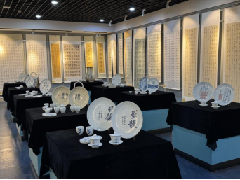 本次“写意长安”展览充分发挥了长安地域资源的优势,涵盖了传统书画卷轴、融入现代元素的瓷器、扇面等文创作品与现场创作等环节,形成四大主题板块精彩纷呈。从金石书法的古朴雄浑到行草书法的灵动洒脱,再到创意设计的古今交融,每一件作品都是学生们对传统艺术的深刻理解与个人风格的完美融合。