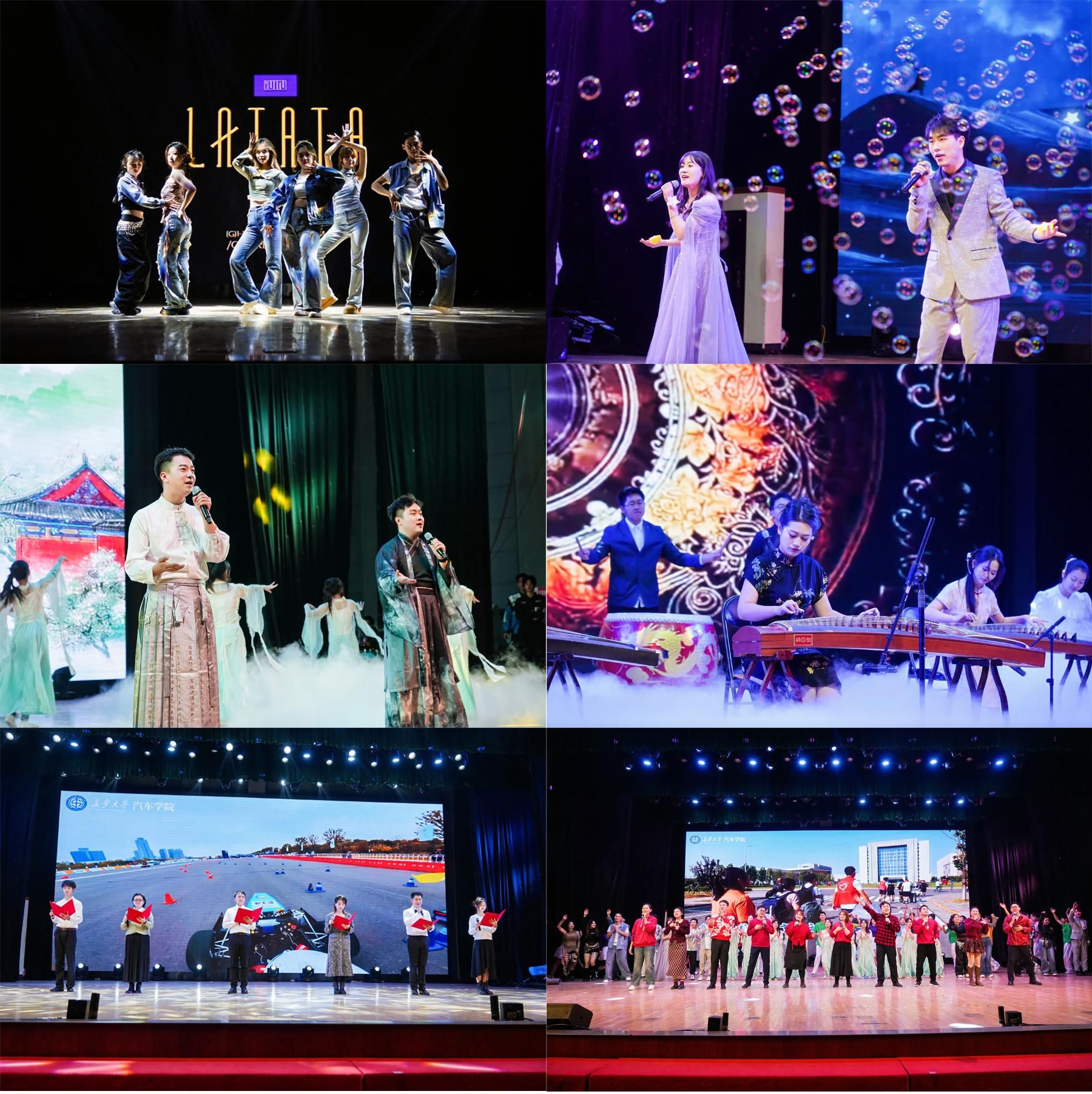 表彰大会结束后,汽车学院2024年“汽势如虹 逐梦新程”迎新晚会在热烈的欢呼声中拉开帷幕。汽车学院的师生们以悦耳的歌声和灵动的舞姿诠释着“汽院人”积极向上的精神风貌和科技报国的使命担当。