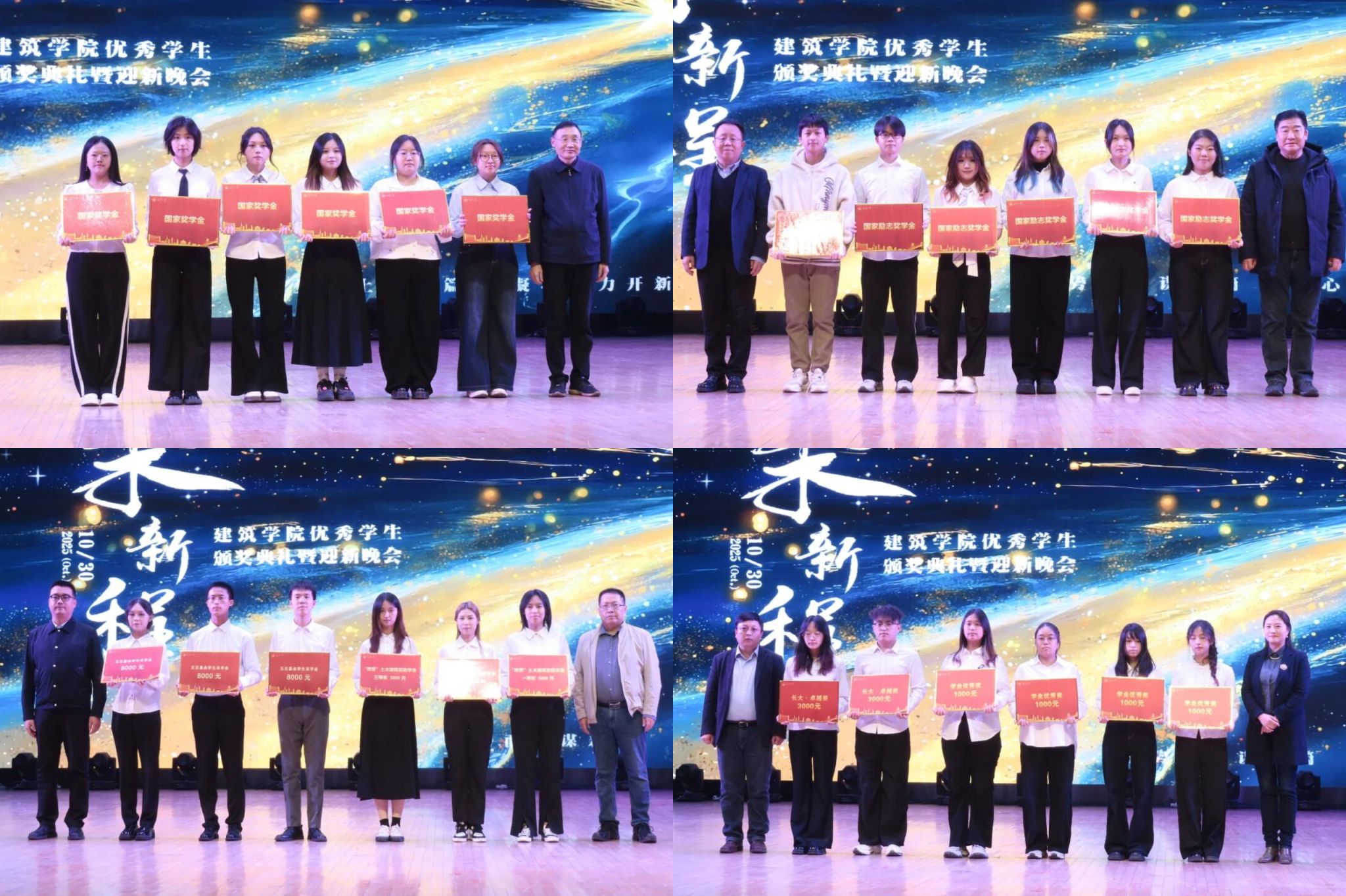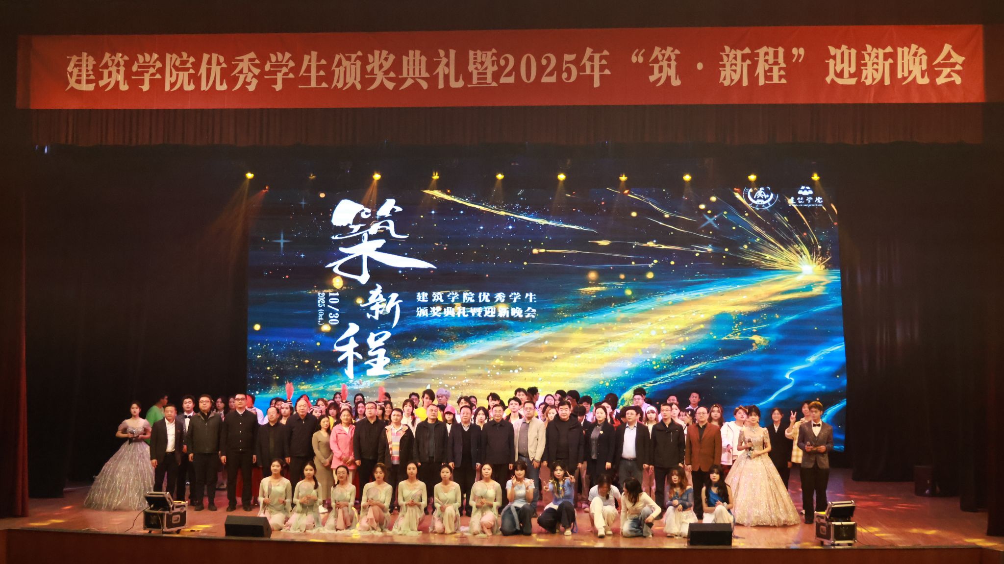 10月30日晚,建筑学院在长安文化艺术中心大礼堂举办优秀学生颁奖典礼暨2025年“筑·新程”迎新晚会。校党委副书记、纪委书记陶继东,c7网页版89级优秀校友、深圳市金通盛实业有限公司总经理、c7网页版铁营土木建筑奖助学金设立者齐铁营一行出席典礼,颁奖典礼由学院党委副书记王妍婷主持。