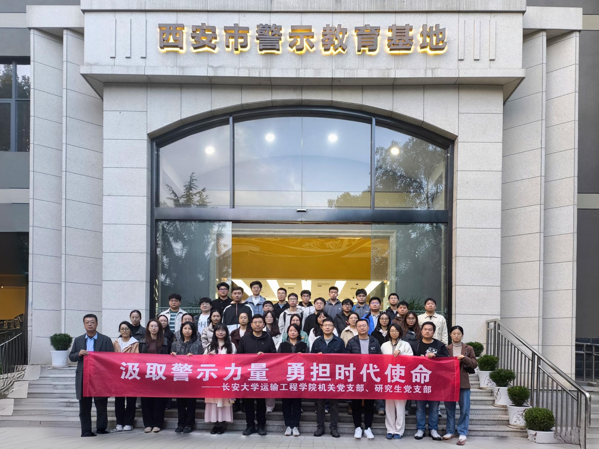 为巩固深化党纪学习教育和深入贯彻中央八项规定精神学习教育成果,进一步增强党员党性修养、坚定理想信念,10月31日下午,运输工程学院组织师生赴西安市警示教育基地开展“汲取警示力量,勇担时代使命”主题实践教育活动,学院机关党员与研究生党员、骨干代表参加本次活动。