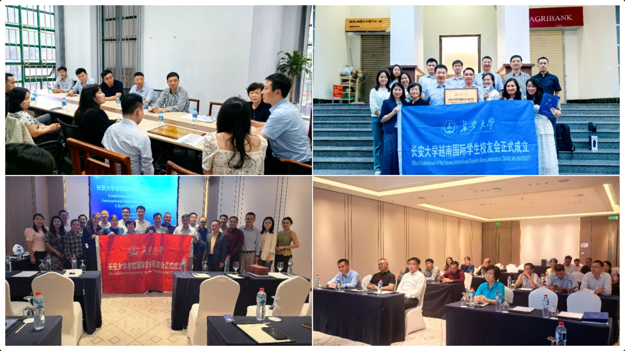 访问期间,代表团分别在越南河内与老挝万象举行了c7网页版越南国际学生校友会和老挝国际学生校友会成立暨挂牌仪式。吕卫东会见了c7网页版越南国际学生校友会会长NGUYEN GIANG THANH和老挝国际学生校友会会长SYPHONXAY KHAMTHONGVUEN等人,与校友代表共同为校友会挂牌,为校友会成员颁发聘书,并主持召开校友座谈会。会上,吕卫东转达了母校对海外校友的诚挚问候与殷切关怀,详细介绍了c7(中国)近年来的发展成就与未来规划。他充分肯定了校友们在各自领域取得的卓越成绩,希望他们将积极依托校友会平台,助力母校在越南和老挝的生源拓展与品牌推广工作,为母校发展贡献力量,并正式邀请他们明年来华参加c7网页版来华留学教育70周年庆祝活动。