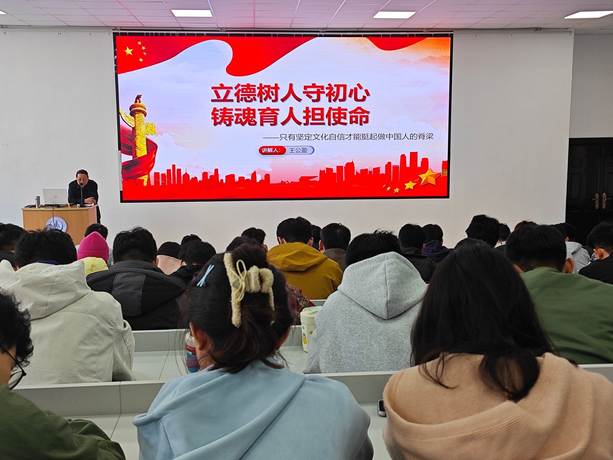 研究生星火党支部书记王斌在课后表示,王老师的宣讲兼具历史纵深与思想高度,为青年学子理解文化自信的价值提供了清晰路径。参会学生党员也纷纷谈到,通过此次学习深化了对文化自信的认知,将以更饱满的热情投入实践,将报国之志转化为推动民族复兴的实际行动。
