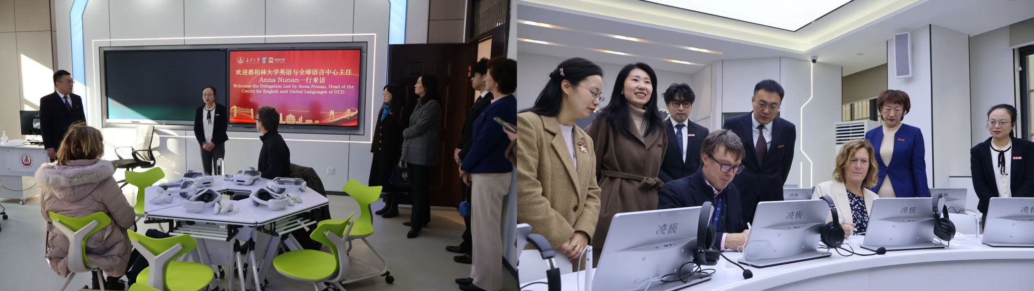 座谈会前,Anna Nunan一行参观了外国语学院-长安都柏林国际交通学院VR外语数智化实训中心和外国语学院同声传译语言实验室。