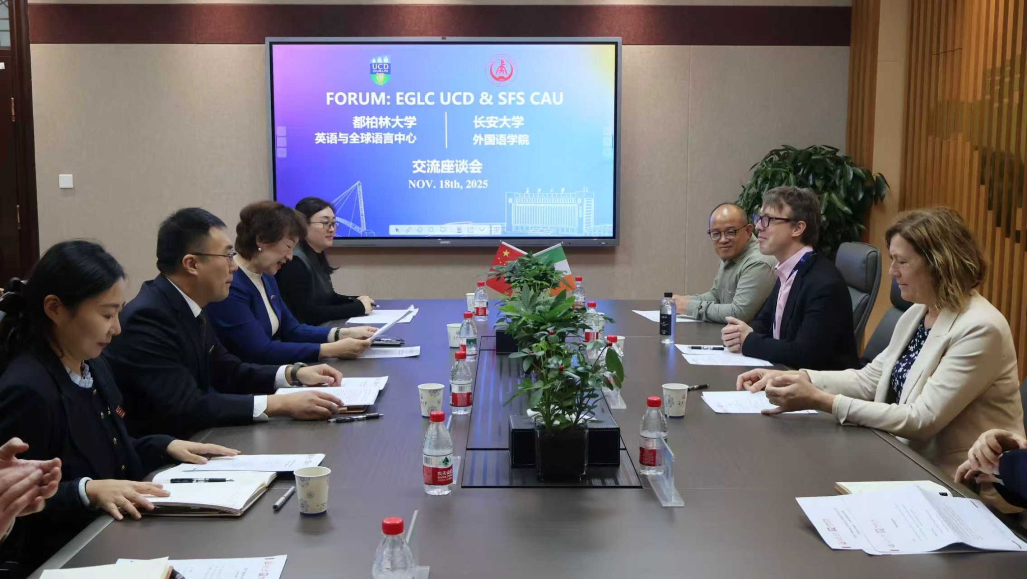 11月18日上午,爱尔兰都柏林大学英语与全球语言中心主任Anna Nunan博士、中国合作办学英语负责人Alex Runchman博士一行到访外国语学院,双方在学院会议室举行座谈交流会,就深化英语教学领域合作、拓展师生交流渠道等议题展开深入探讨。学院党委书记张永、相关系(室)负责人及教师代表参加座谈,座谈会由学院副院长马瑛主持。