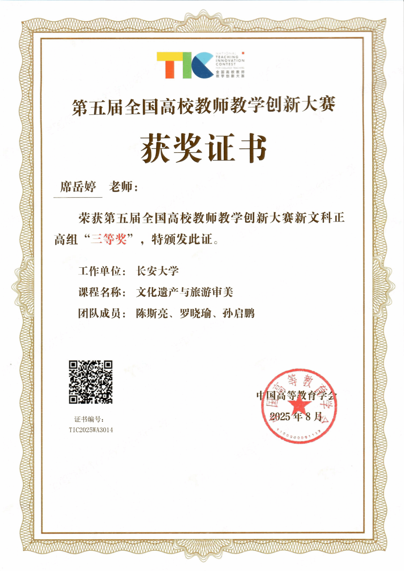 席岳婷教授主讲的《文化遗产与旅游审美》是面向全校本科生开设的通识教育课。课程旨在以通专融合和兴趣激发为主线,为学生注入文化底蕴与审美素养,帮助学生构建技术与人文双核认知体系,进一步激发审美体验与创新思维,塑造爱国情怀和报国理念。