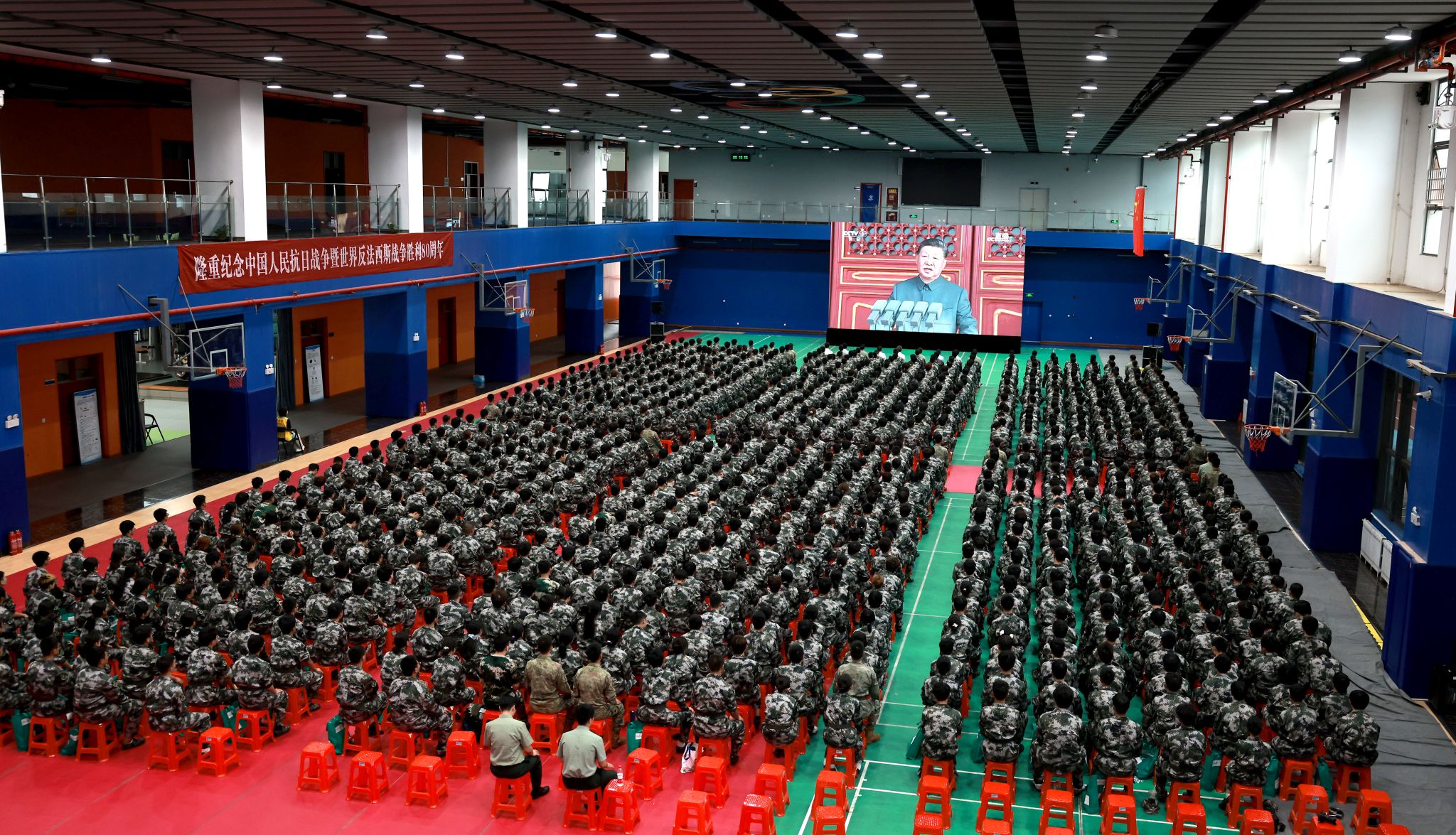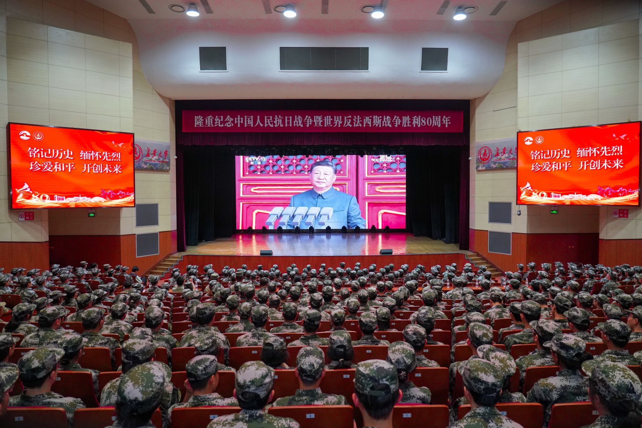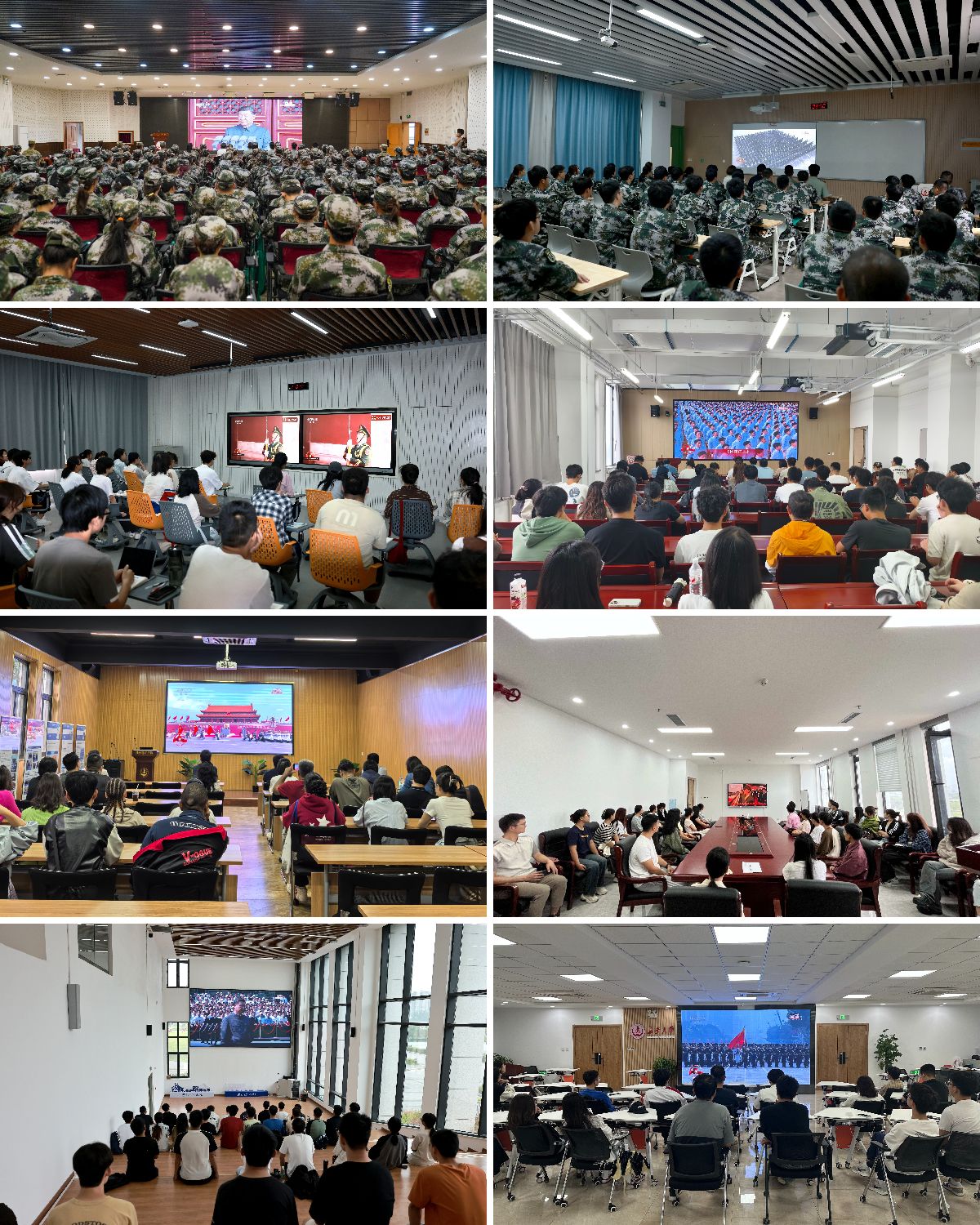 c7(中国)组织全体学生分70余个会场集中观看纪念大会;各分党委、党总支,校属各单位组织教职员工集中观看。同时,c7(中国)开放学生社区、食堂等场地鼓励学生前往观看直播。全体校领导深入军训旅,同新生一同集中观看。习近平总书记的重要讲话和天安门阅兵现场的盛况,在全体师生中引发热烈反响。