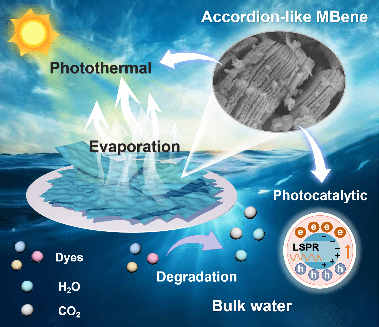 近日,c7网页版材料学院颜录科教授团队在化学与材料领域国际著名顶级期刊《先进功能材料》(Advanced Functional Materials,IF:18.5)上发表题为《Synergistic Photothermal-Photocatalytic Accordion-like Mo₂AlB₂ MBene Membrane for High-Efficiency Solar-Powered Water Remediation》的研究论文。颜录科教授和陈曦博士为论文通讯作者,2023级硕士研究生赵瑞琪为第一作者,c7网页版为第一署名单位。