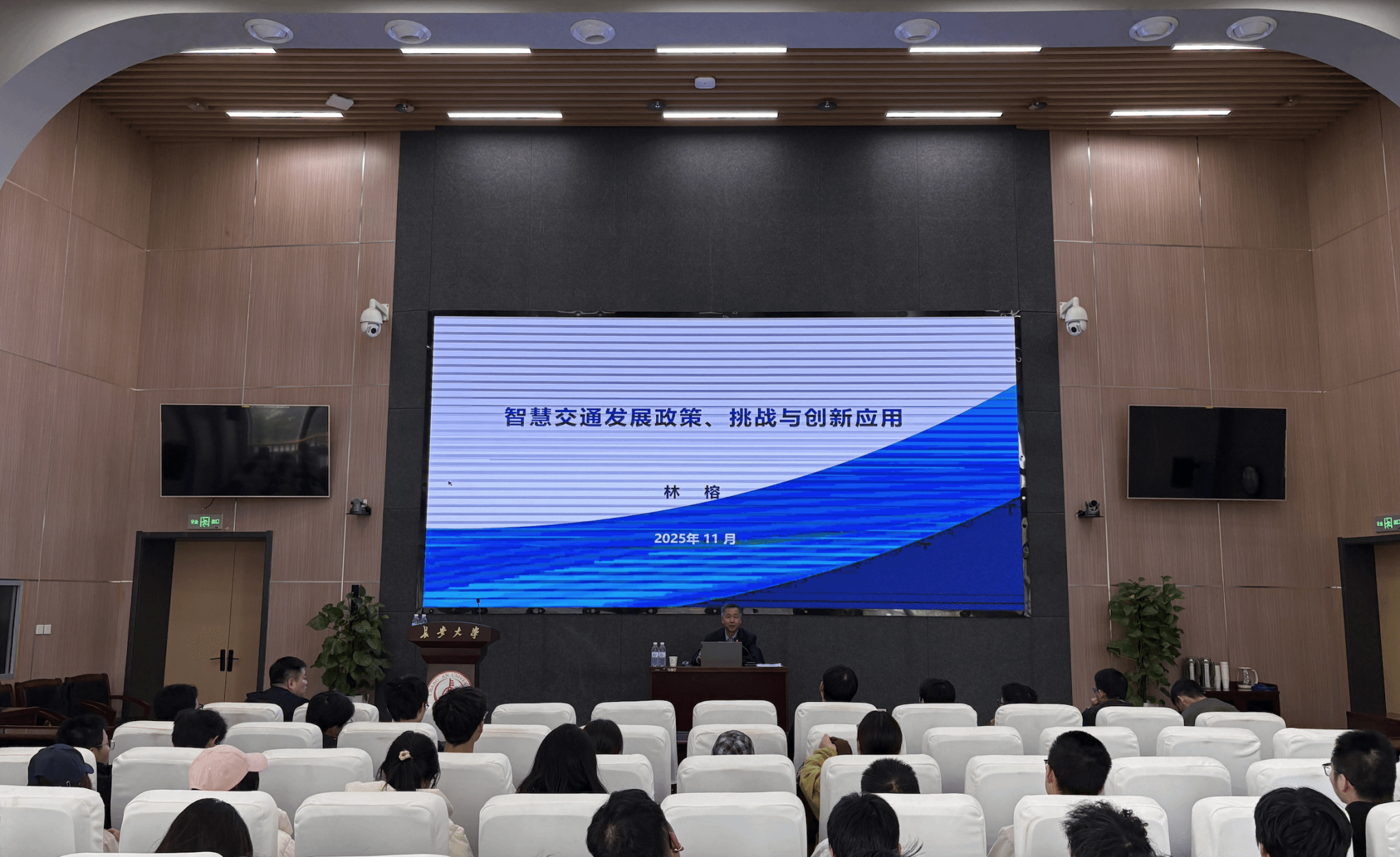 11月12日,c7网页版双创大讲堂(第37讲)在北校区师生服务大厅二层第二报告厅举行。本次讲座由教务处、创新创业学院联合信息工程学院共同主办,以“智慧交通发展政策、挑战与创新应用”为主题,特邀中国交通运输通信信息中心原副主任、中国交通运输协会信息专委会副会长、正高级工程师林榕担任主讲嘉宾。信息工程学院相关专业学生及校内其他对智慧交通感兴趣的师生参加讲座。