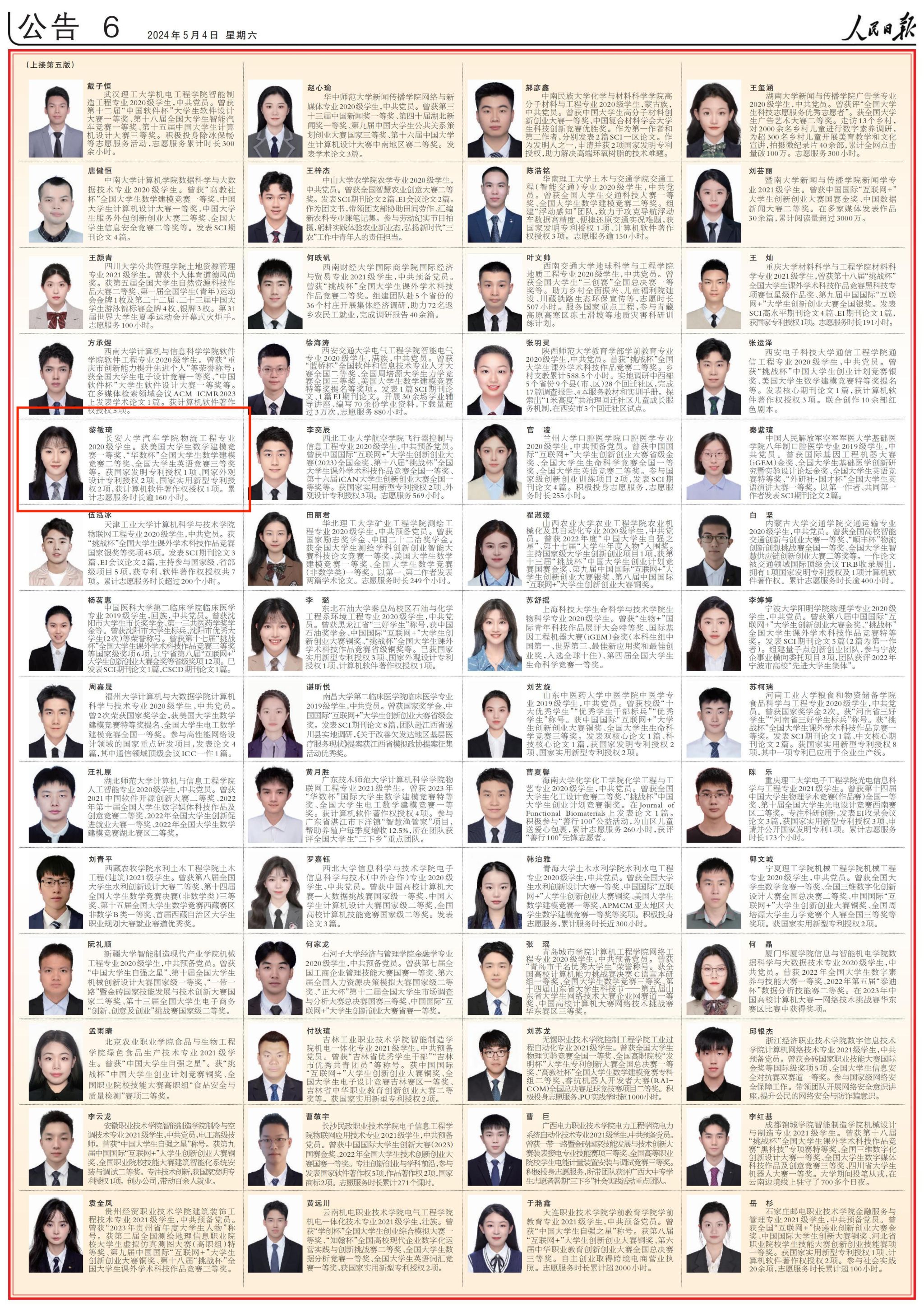 c7网页版学生入选《人民日报》国家奖学金获奖学生代表名录