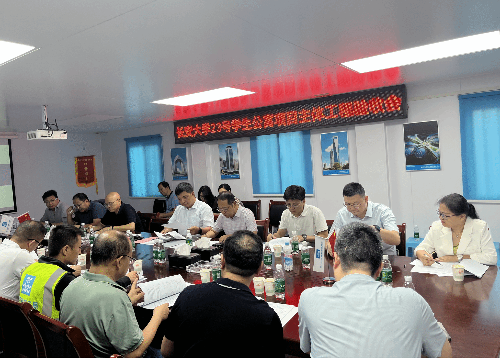 验收会上,基建处、施工单位、监理单位分别就工程概况、自评报告及工程相关验收评估报告进行了详细汇报。结合实体验收和资料检查情况,与会单位及特聘专家分别发表验收意见,一致认为23号学生公寓项目主体工程达到国家建设工程质量验收标准,工程质量为合格。