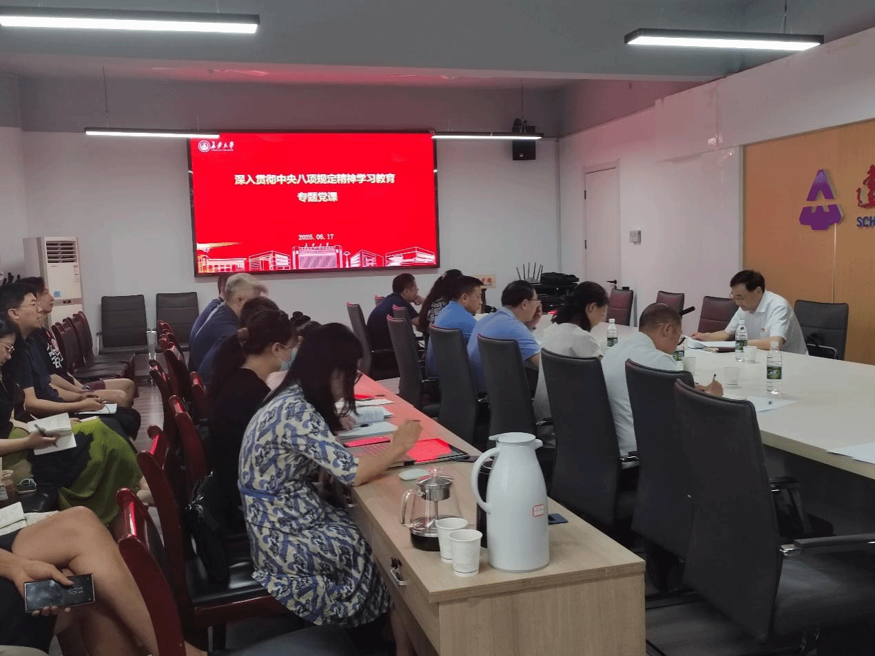 陶继东紧紧围绕作风建设这一党的建设永恒主题,聚焦深入贯彻中央八项规定精神学习教育的目标要求,围绕深刻领会习近平总书记关于加强党的作风建设的重要论述、充分认识党的十八大以来深入贯彻中央八项规定精神取得的显著成效、准确把握当前作风建设面临的突出问题、锲而不舍把作风建设引向深入等四个方面,结合解读7个隐形变异方面的问题表现,通报并剖析陕西省多起违反中央八项规定精神的典型案例,为党员干部上了一堂严肃、深刻的专题党课。陶继东强调,建筑学院领导班子和广大党员干部要认真学习贯彻习近平总书记关于加强党的作风建设的重要论述和中央八项规定及其实施细则精神,切实把思想和行动统一到党中央决策部署上来,扎实开展深入贯彻中央八项规定精神学习教育,紧密结合正在开展的巡察整改工作,弘扬优良作风,动真碰硬抓整改,精准施策求实效,为奋进新征程凝心聚力,努力将学习教育成果转化为学院高质量发展的实绩实效。
