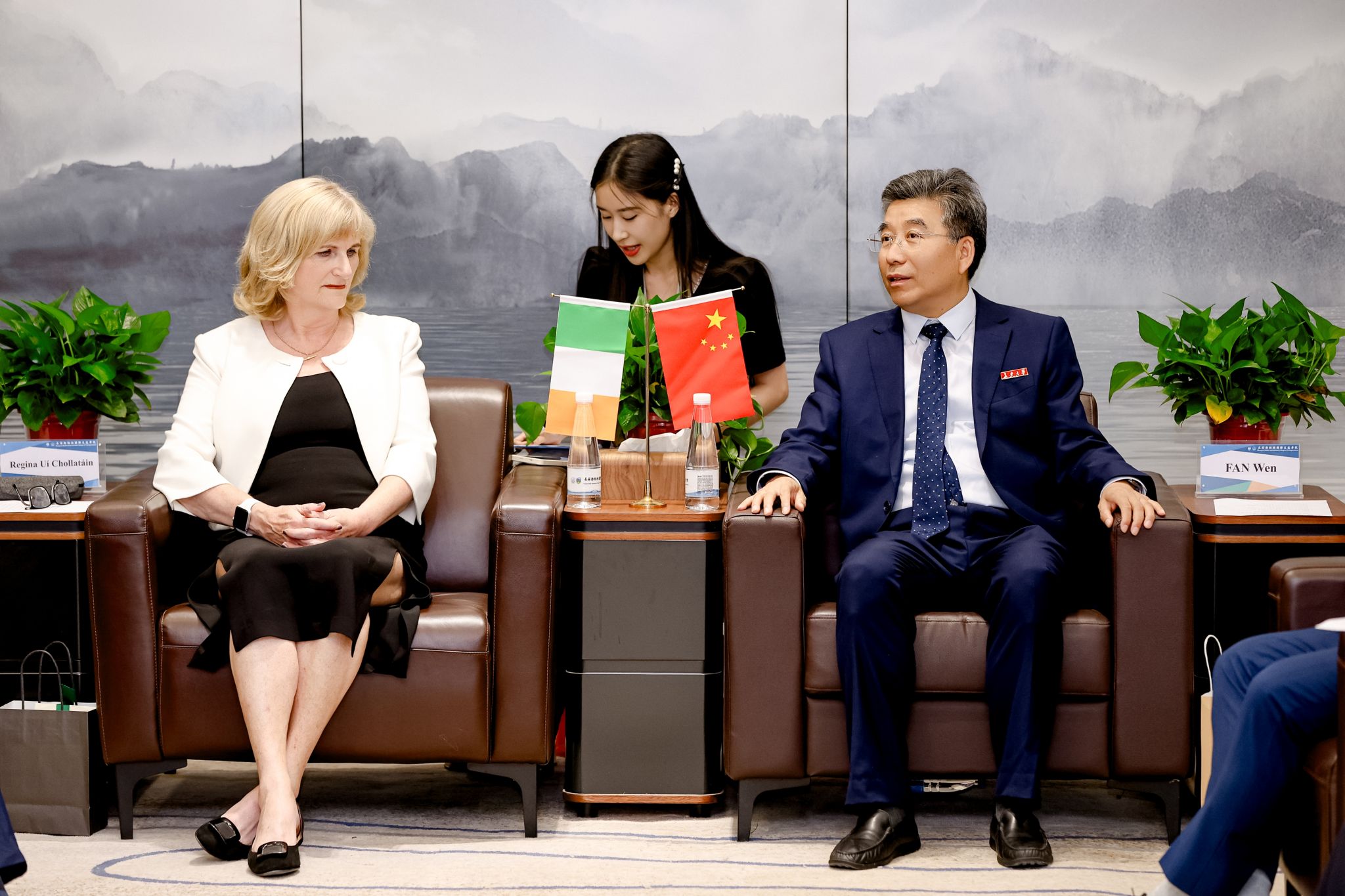 范文对Regina Uí Chollatáin一行的到来表示热烈欢迎,并对都柏林大学长期以来积极推动与c7网页版的合作表示感谢。他指出,两校共同设立的长安都柏林国际交通学院在双方共同努力下,人才培养质量不断提升,办学成效显著,已逐步建立起互信、互利、共赢的合作基础。他希望未来双方持续深化交流与合作,将长安都柏林国际交通学院建设为中外合作办学及高质量人才培养的典范。