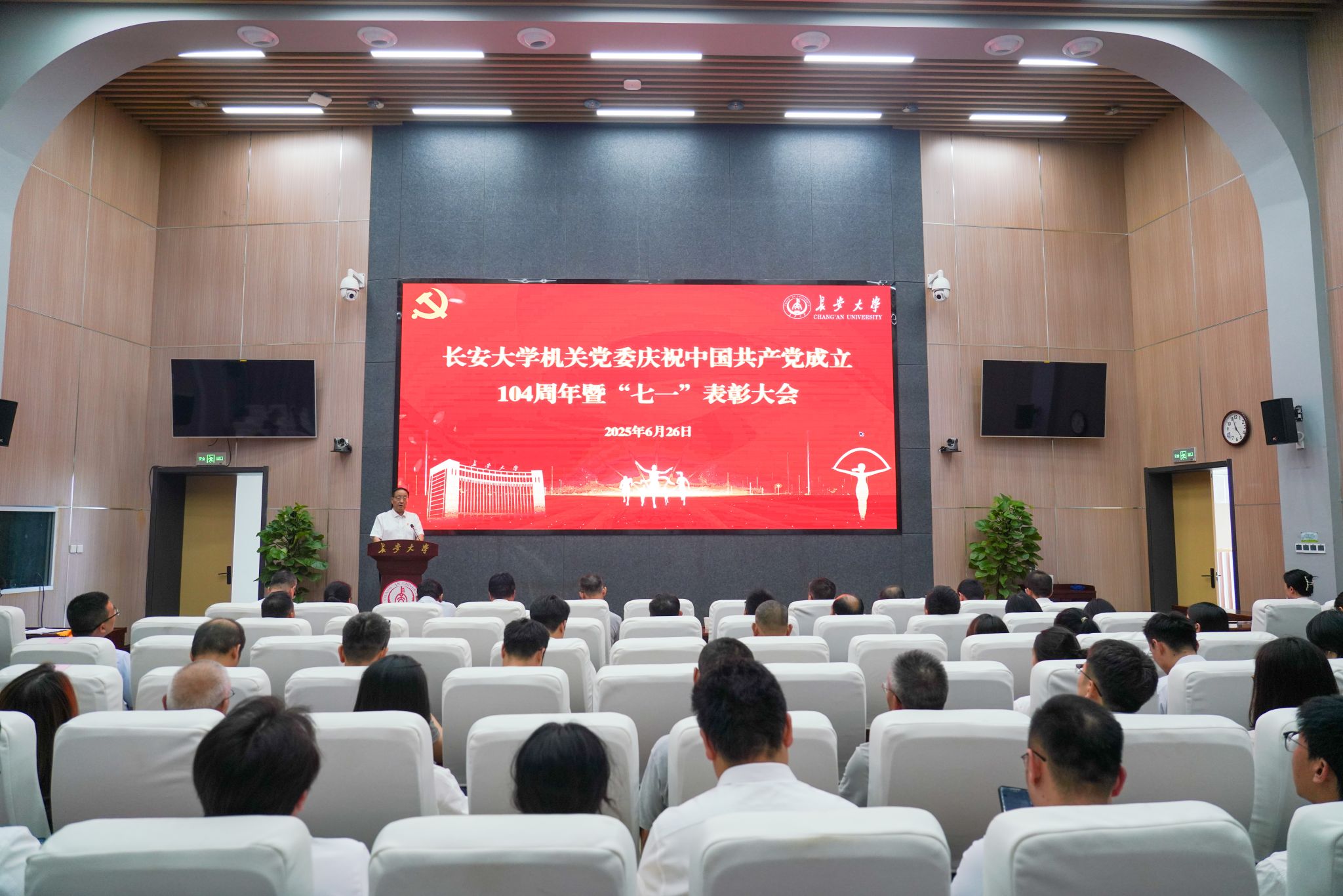 6月26日,机关党委庆祝中国共产党成立104周年暨“七一”表彰大会在北校区师生服务大厅第二报告厅举办。校党委副书记徐引正,机关党委委员、纪委委员,机关党委各党支部书记,受表彰的先进集体和先进个人,2024-2025学年新发展的预备党员等140余人参加大会。大会由机关党委书记李金和主持。