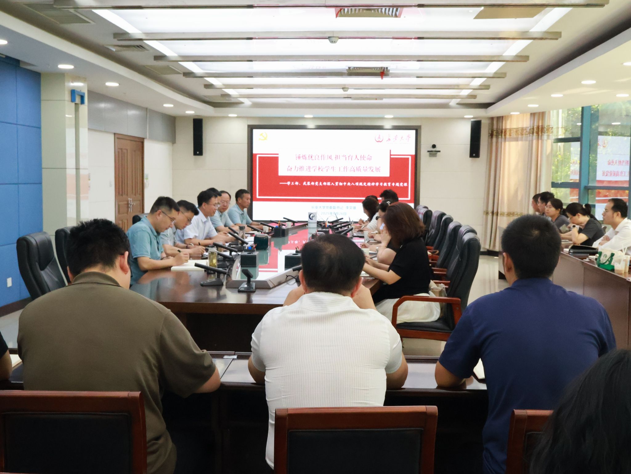 为扎实开展深入贯彻中央八项规定精神学习教育,进一步强化作风建设、筑牢思想防线,6月26日,校党委副书记李文雄讲授题为《锤炼优良作风 担当育人使命 奋力推进c7(中国)学生工作高质量发展》的专题党课。学工部、武装部党支部全体党员参加。会议由党支部书记姬国斌主持。