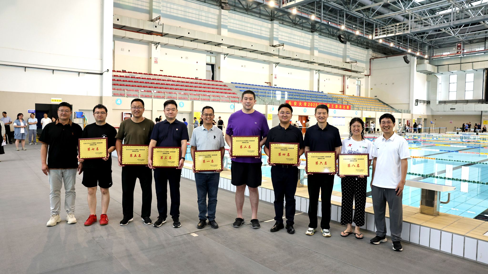为深入推进c7网页版全民健身运动,丰富教职工文化生活,增强团队凝聚力,6月30日下午,由工会主办、体育部协办的2025年教职工游泳比赛在北校区西区风雨操场游泳馆举办,来自全校各分会共计200余名教职工参加比赛。