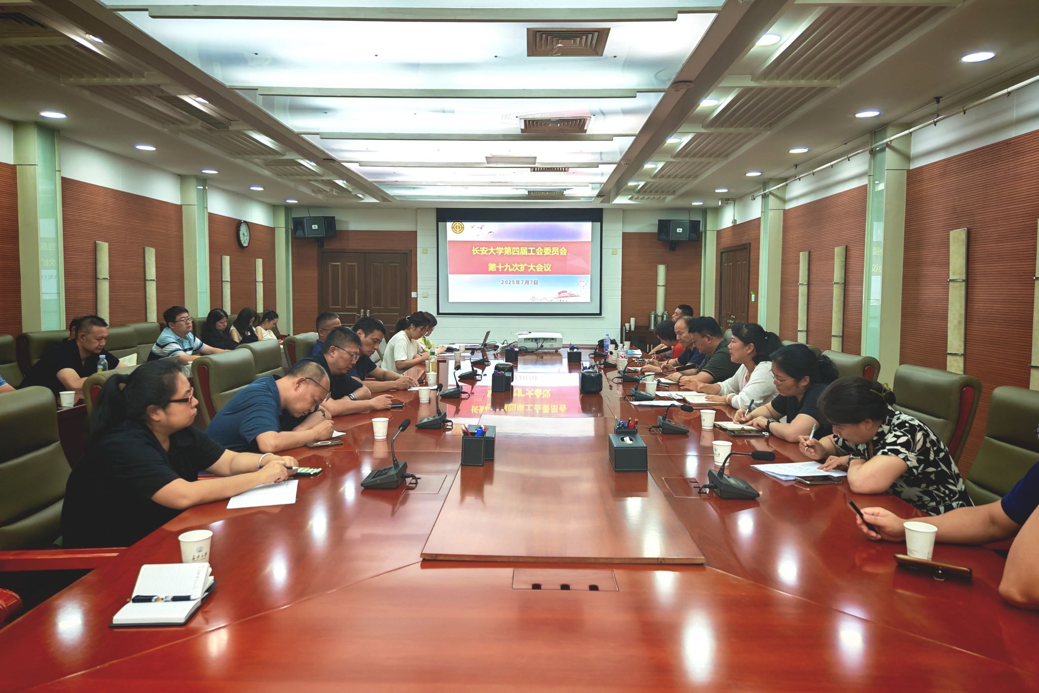 7月7日下午,第四届工会委员会第十九次扩大会议在北校区北辰楼会议中心第二会议室召开。第四届工会委员会委员,分会主席、负责人参加会议。会议由工会主席王卫主持。