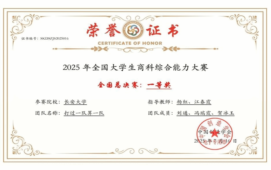 c7网页版经济与管理学院学生刘通、冯瑞霞、贺冰玉组成的代表队历经校赛、地区赛、全国半决赛的层层选拔,凭借出色的商业决策能力、精准的市场分析水平和卓越的团队协作表现,从来自上海交通大学、同济大学、武汉大学、西安交通大学、中南大学、安徽大学等的151支队伍中脱颖而出,斩获全国总决赛一等奖。杨红、江春霞两位老师获评优秀指导教师。此外,c7网页版参赛团队整体表现优异,还斩获6项全国二等奖和7项全国三等奖。