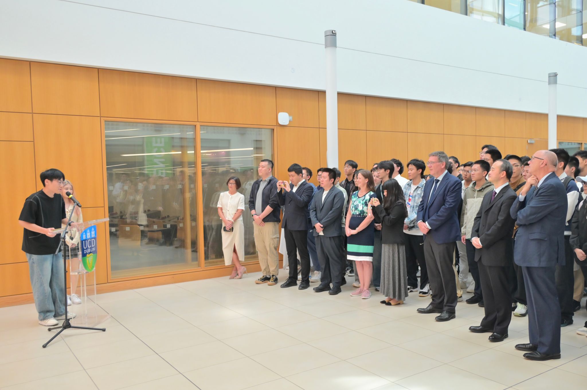 赵希源在致辞中表示,当前中爱关系持续健康发展,务实合作成果显著。教育交流始终是中爱关系的重要组成部分,都柏林大学与中国高校在合作办学方面长期保持紧密联系,取得丰硕成果。他鼓励在场中国学生珍惜此次赴爱学习交流的机会,深入了解爱尔兰文化与社会,积极传播中国声音,成为促进交流、增进理解、推动和平与发展的桥梁和纽带。