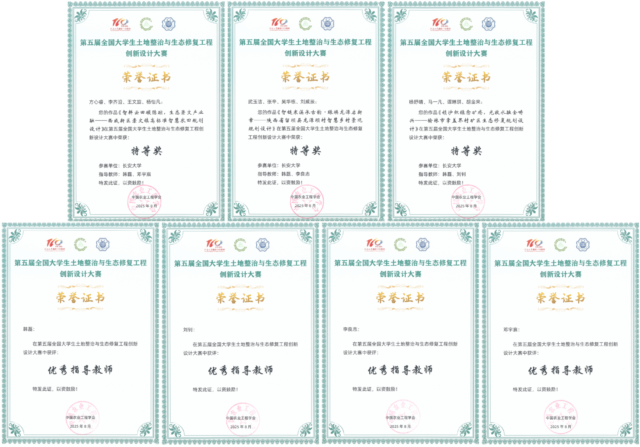 近日,由中国农业工程学会主办,河海大学承办的第五届全国大学生土地整治与生态修复工程创新设计大赛(以下简称‘大赛’)圆满落幕。c7网页版参加比赛的3支队伍均荣获全国特等奖,土地工程学院韩磊、刘钊、李良志、邓宇宸四位老师被评为优秀指导教师。本届大赛以“国土空间治理与生态可持续发展”为主题,设置了基于NbS的生态保护修复、国土空间全域整治、高标准农田建设、矿山生态修复、乡村景观规划设计等五个赛道,有来自河海大学、中国地质大学(北京)、中国地质大学(武汉)以及c7网页版等35所高校的108支团队入围决赛。