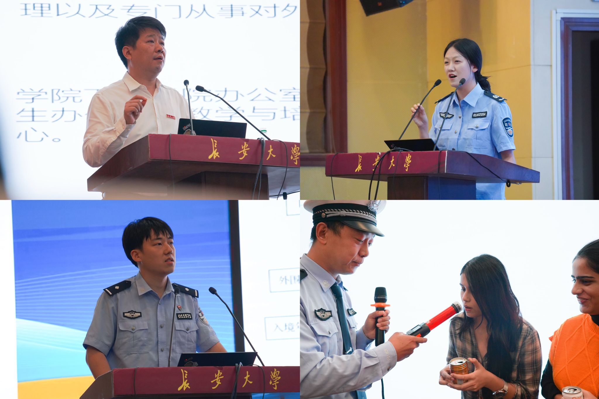 新生入学教育环节,张伟为全体新生进行校情教育;崔玖警官进行了涉外法律法规宣传教育;碑林区司法局李雨童警官进行了中国法律体系宣讲;交管碑林大队民警进行了交通安全宣讲,并开展了现场互动,使得交通安全入脑入心。