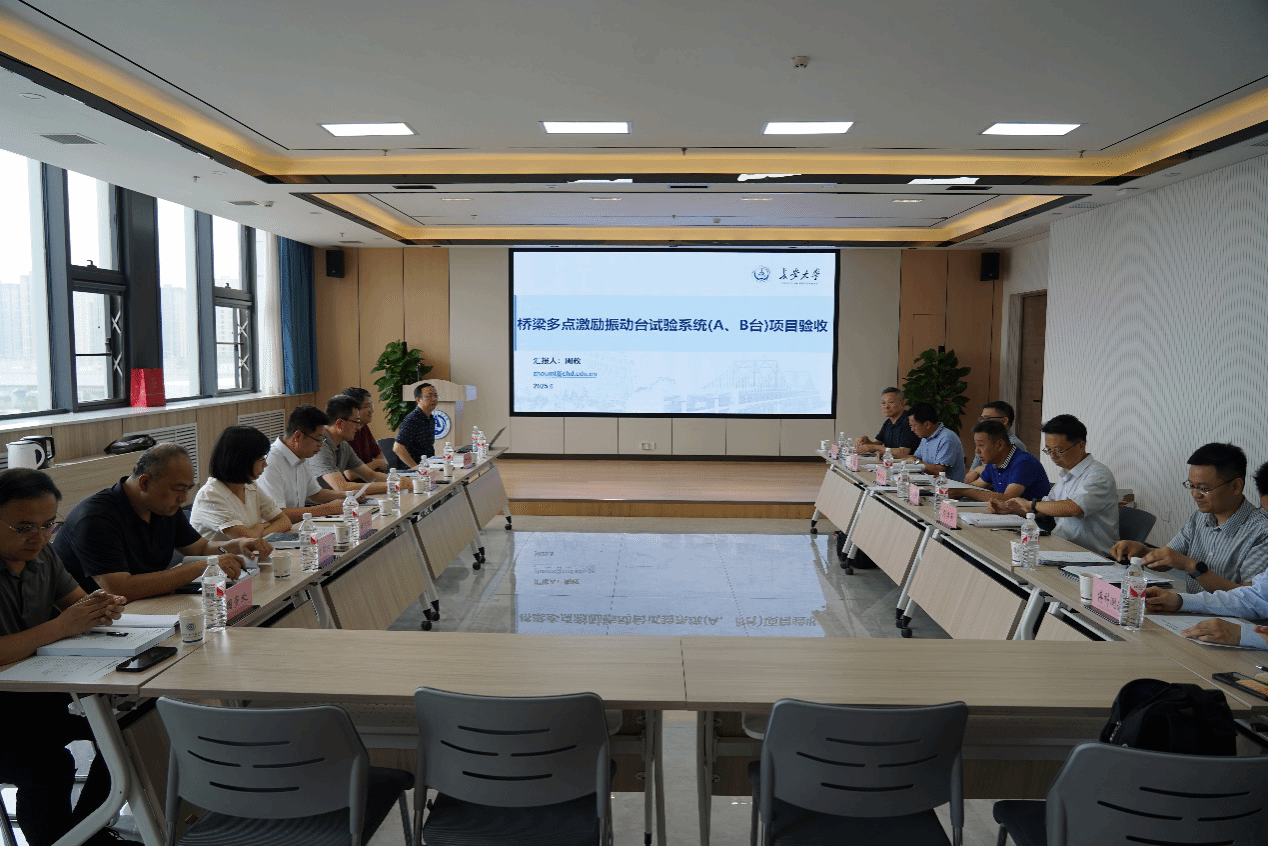 验收会上,设备使用单位公路学院与供应商北京博科测试系统股份有限公司分别就设备建设情况、技术参数、调试过程等内容进行详细汇报。随后,专家组深入设备现场,对系统运行状态、性能指标进行实地考察,并围绕技术细节展开质询。经过严谨的讨论与论证,专家组一致认定:北京博科测试系统股份有限公司严格按照合同要求,高质量完成设备制造、安装、调试与验收试验,验收资料完整规范;设备现场运行稳定可靠,各项性能表现优异,“桥梁多点激励振动台试验系统” 满足合同规定的全部指标要求,顺利通过验收。