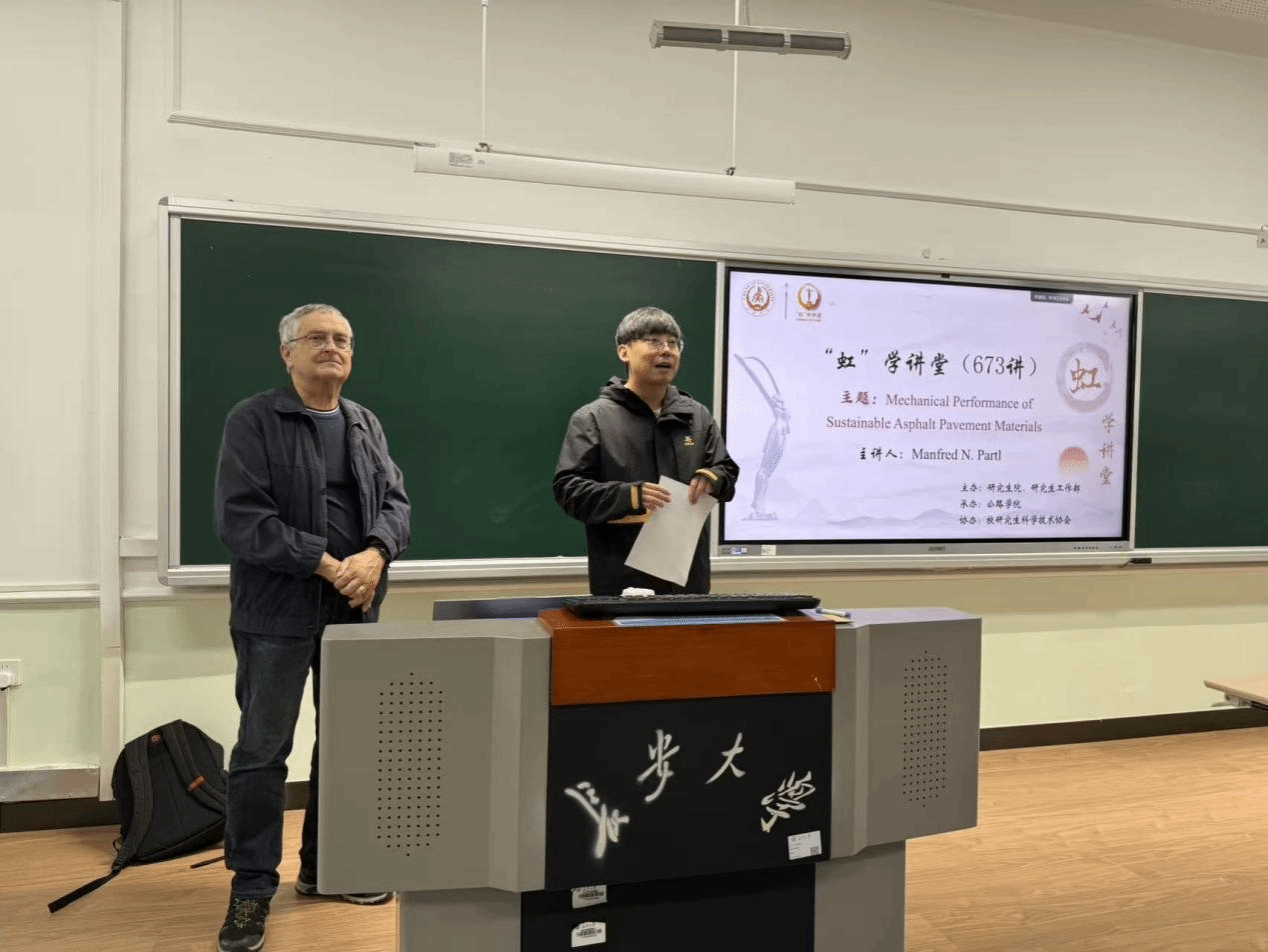 11月5日晚,由研究生院、研究生工作部主办,公路学院承办,校研究生科学技术协会协办的“虹”学讲堂第673讲在南校区北院B301教室举行。瑞典皇家理工学院Manfred N. Partl教授作题为“Mechanical Performance of Sustainable Asphalt Pavement Materials”的报告,公路学院吕磊老师主持报告会,相关学院共90余名师生参加讲座。