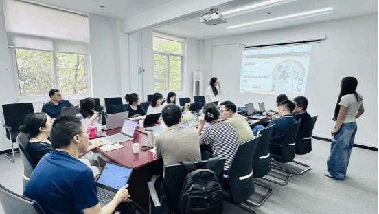 工作坊实操培训分三个阶段进行。平台工程师带领老师们使用相关课程共享资源包快速建课,对AI辅助教学资源建设进行了逐一演示和现场操作指导。围绕不同课程特点,工程师带领老师们就课程章节内容、知识图谱、能力图谱、问题图谱、思政图谱、AI助教等方面进行建课指导,帮助老师们掌握智慧课程的具体建课内容。工程师围绕智慧课程运行中的学生学习路径、学习画像、辅助辅导、作业生成与智慧批阅等方面的功能带领老师进一步熟悉应用方法。