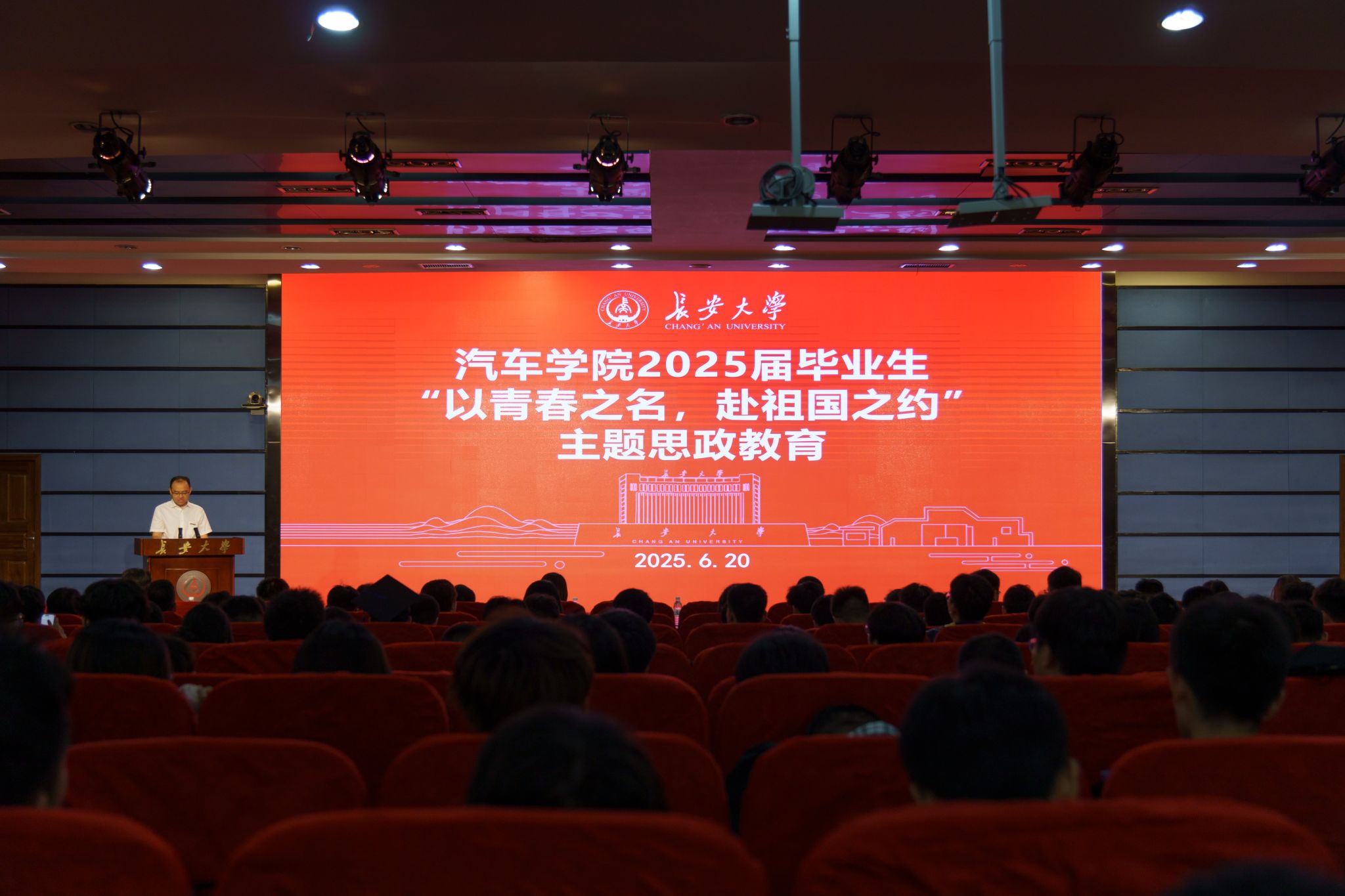 为进一步加强毕业生理想信念教育,引导毕业生厚植爱党爱国爱社会主义情怀,将个人理想追求融入党和国家事业之中,成为担当民族复兴大任的时代新人,6月20日上午,汽车学院举行毕业生主题思政课教育活动,党委书记林贵宝向全体毕业生讲授“以青春之名,赴祖国之约”主题思政课,教育活动由院长赵轩主持。
