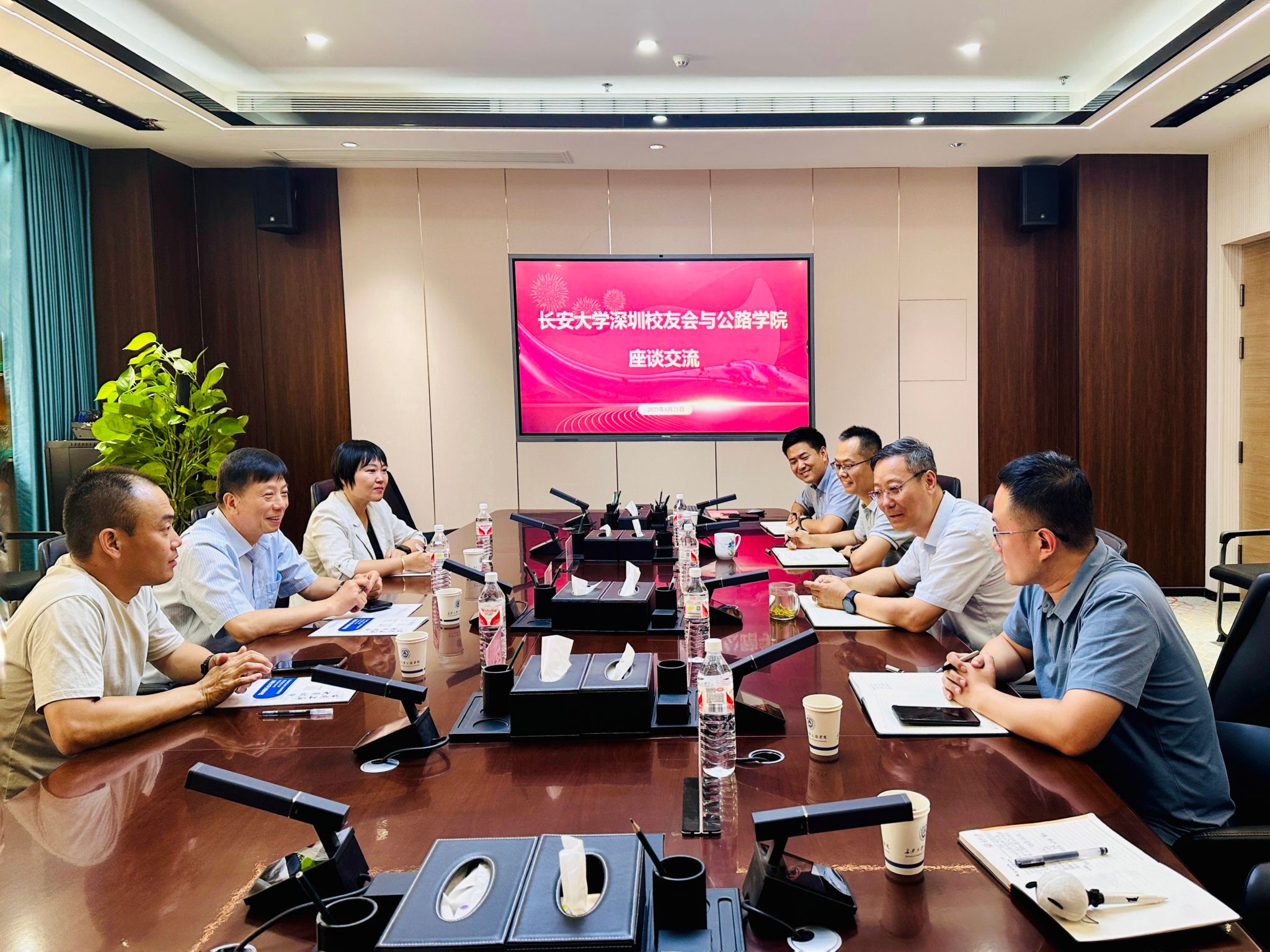 深圳校友会秘书长于莹、副秘书长刘士江,公路学院党委副书记、副院长刘伟,党委副书记贾历波,办公室主任王志坤,校友专干覃勤参加座谈。
