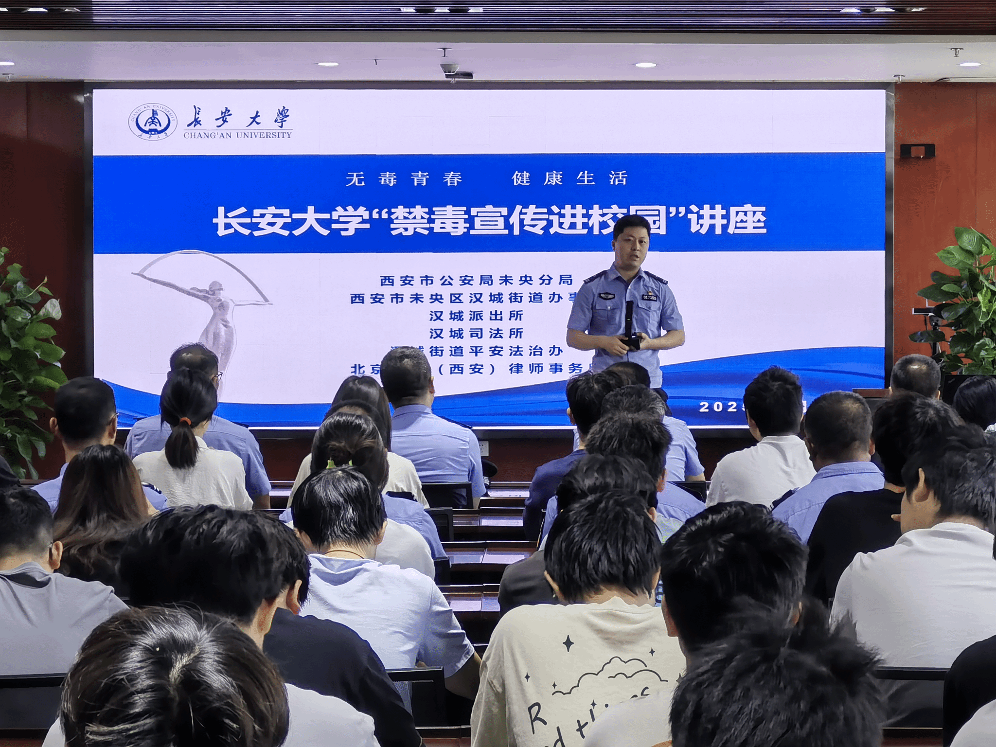 6月26日,在第33个“国际禁毒日”来临之际,保卫处(工作部)邀请西安市公安局未央分局副局长付强、禁毒大队大队长元伟君,未央区汉城街道办事处、汉城派出所所长何景新、汉城司法所所长杨治军、北京兰台(西安)律师事务所律师李雪静到校,开展“无毒青春、健康生活”禁毒宣传进校园活动,向师生揭示吸食毒品、滥用涉麻精药品等成瘾性物质的严重危害。