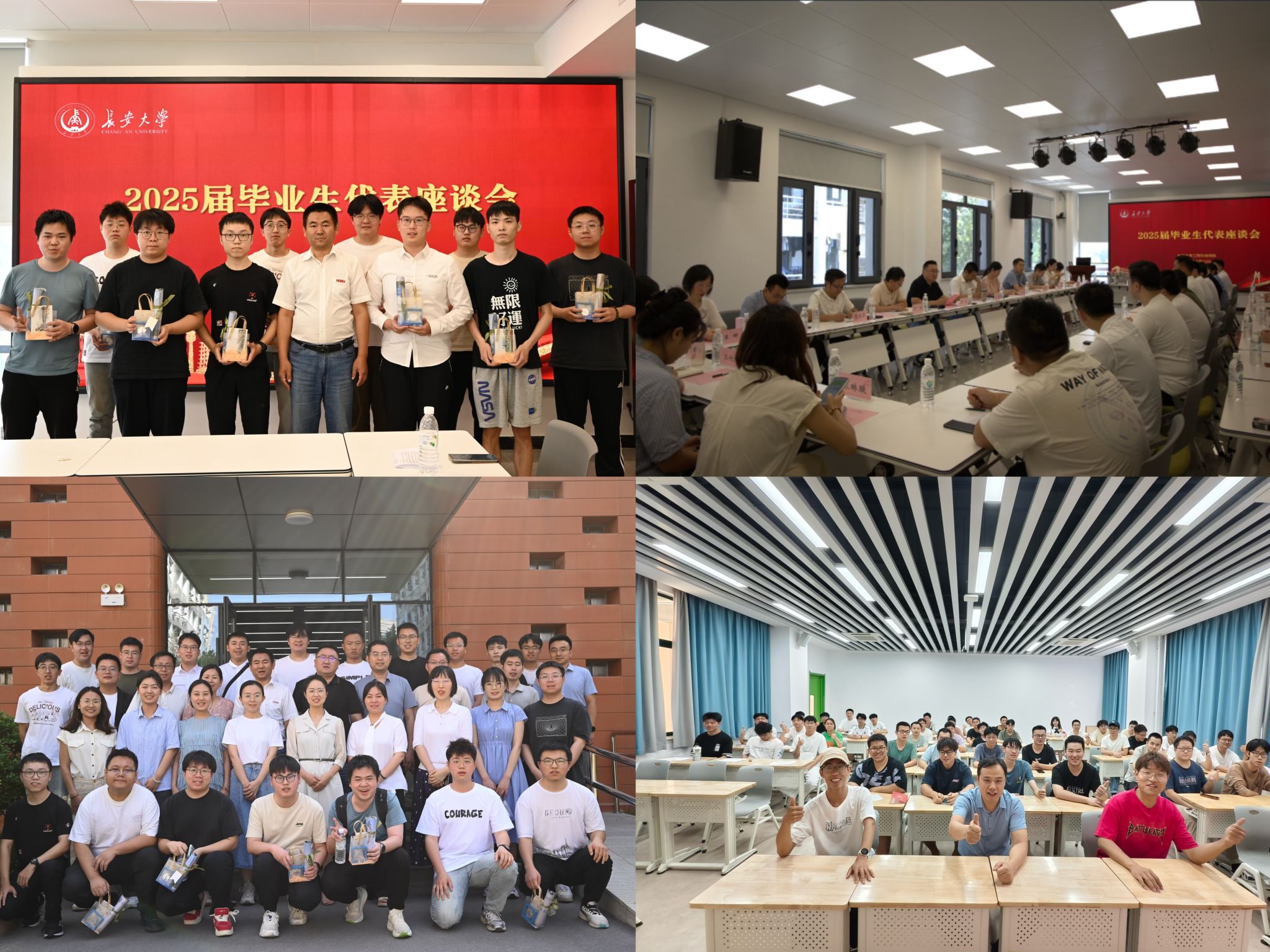 深化师生交流,凝聚前行合力。学院通过多样的师生交流活动,为毕业生答疑解惑、指引方向。思政班主任召开毕业主题班会,勉励大家文明离校、珍惜友谊,将个人理想融入国家发展大局。学院举行2025届毕业生代表座谈会,党政领导、系主任、辅导员与20余位本科及硕士研究生毕业生代表面对面交流,毕业生分享成长收获并为学院发展建言献策,老师们认真记录、逐一回应,并为毕业生赠送纪念品,寄语大家既要脚踏实地锤炼本领,更要志存高远胸怀天下,在时代浪潮中找准人生坐标。