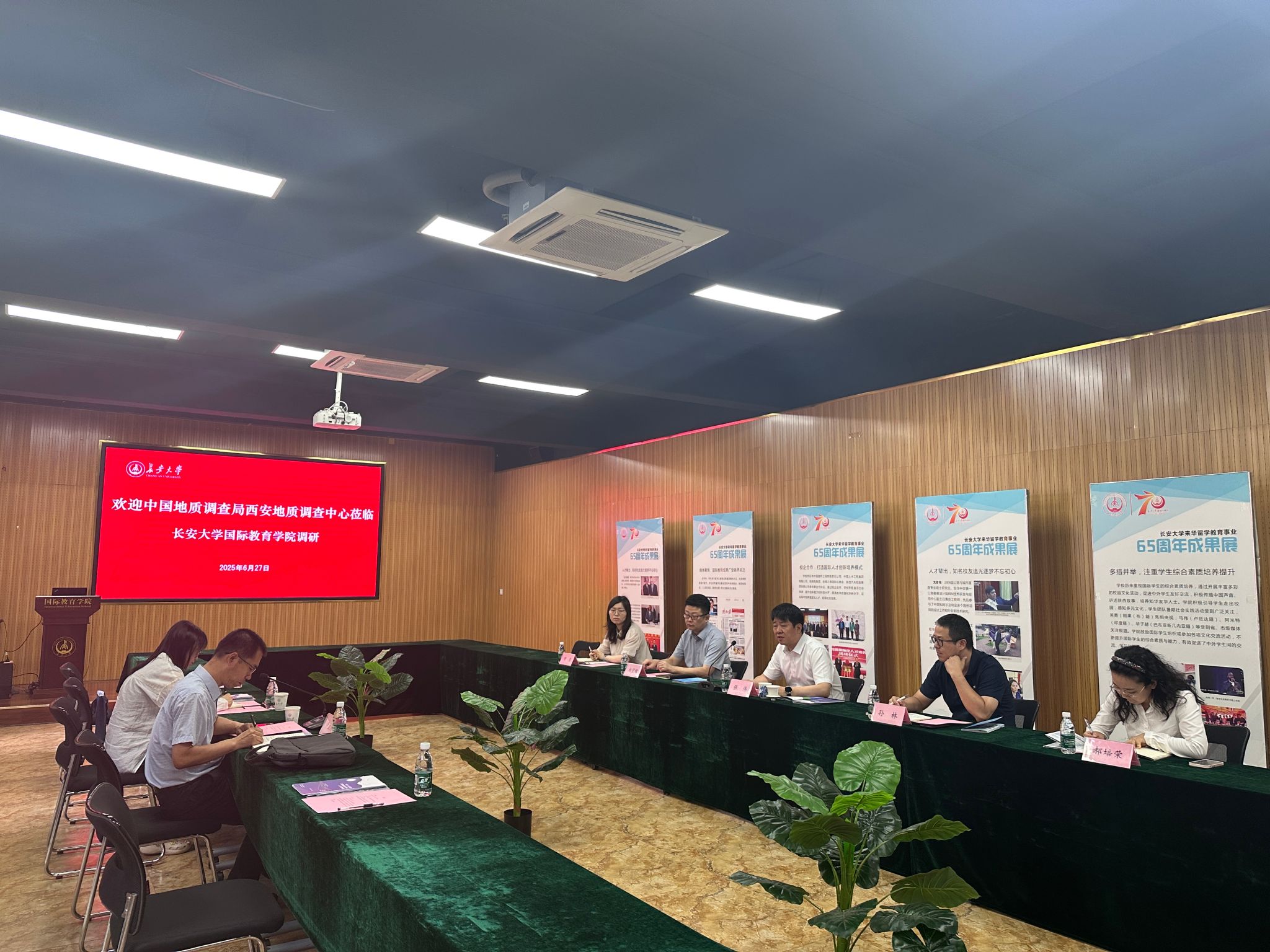 6月27日,中国地质调查局西安地质调查中心副主任尹立河到国际教育学院调研交流。国际教育学院院长张伟、副院长杨望暾、副院长孙林及相关科室负责人参加座谈会。