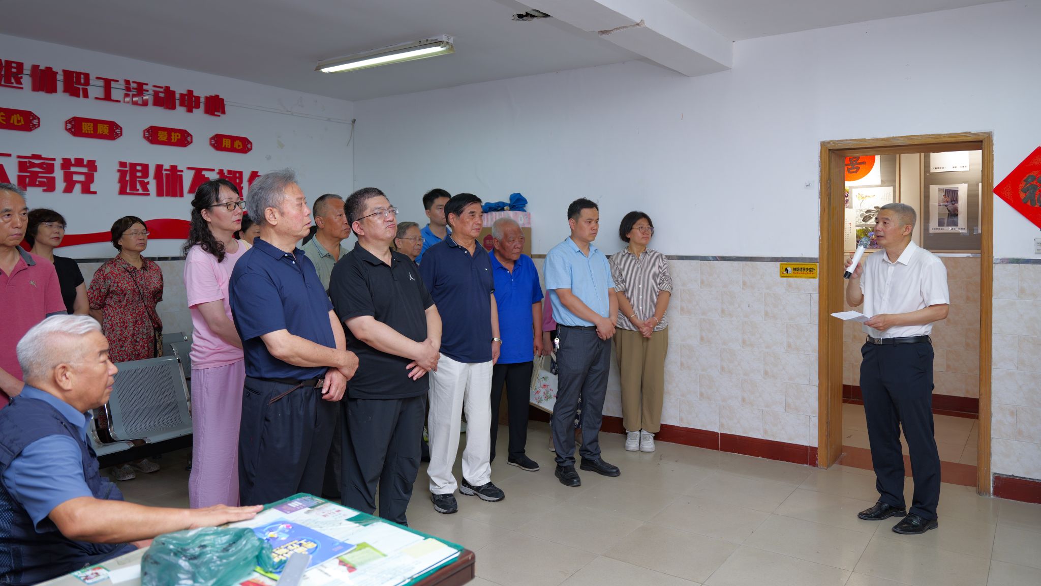 为庆祝中国共产党成立104周年,全面展示老年学员的学习成果,6月30日,离退休工作处在南校区育才路住宅区活动室举行庆“七一”暨老年大学2025年春季班教学成果展,处领导班子成员,老年大学班主任、班长和学员参加本次活动。