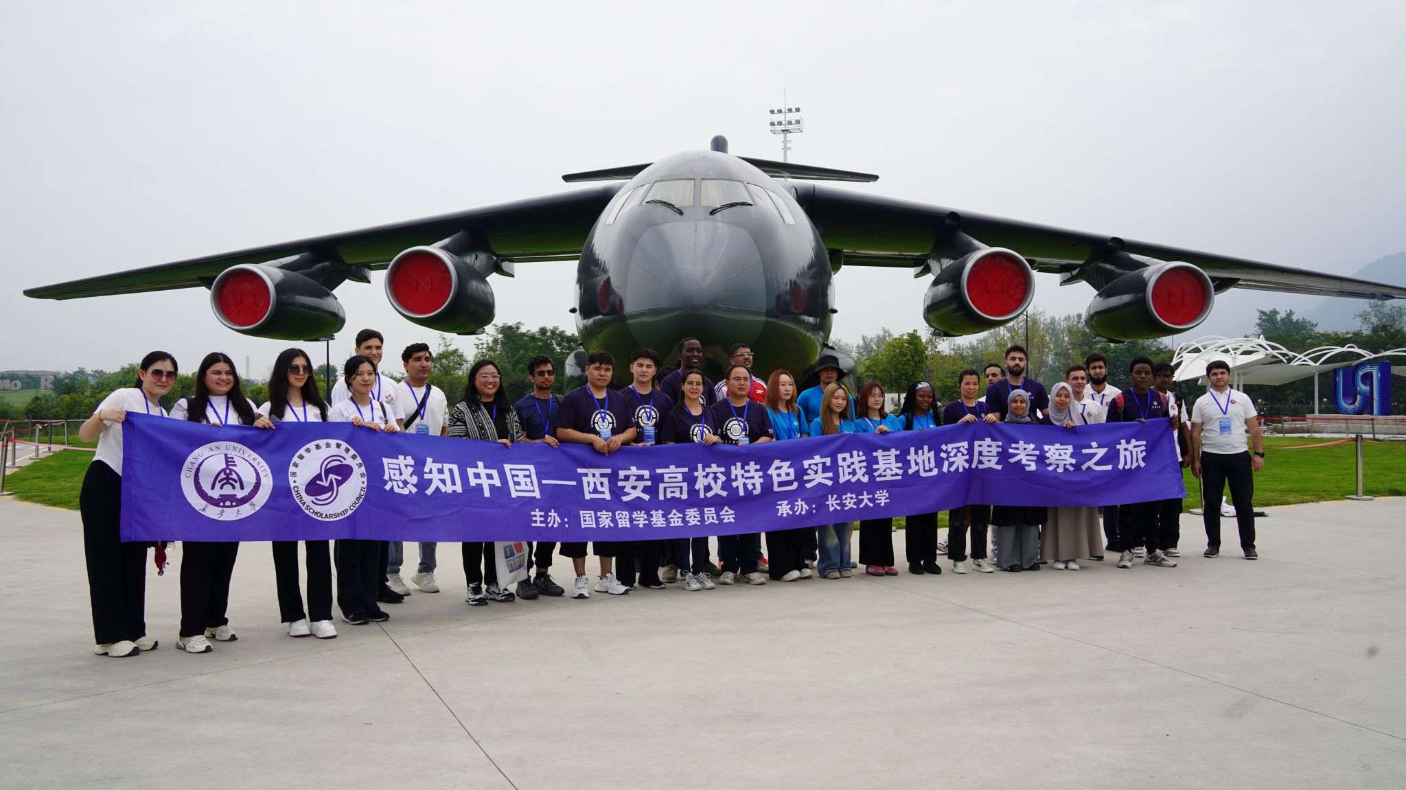 国际学生在西北工业大学中国航空航天国情教育基地合影