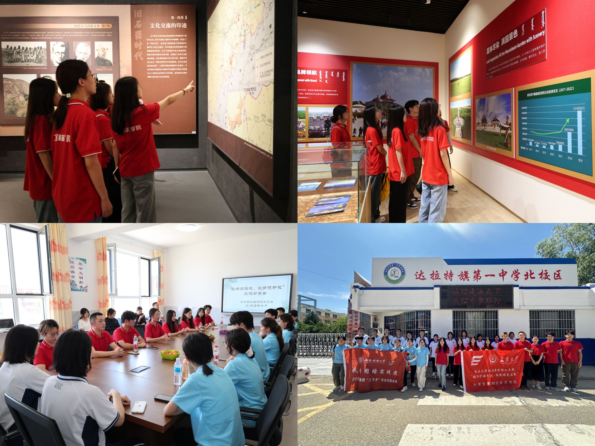 文化为魂,传承绿色发展精神。鄂尔多斯博物馆里,4000余件文物带领实践队员们追溯着当地生态变迁,从远古的水草丰美到近代的沙化加剧,再到如今的绿意回归,时间的脉络里藏着治沙的坚韧。成吉思汗陵内,实践队员们看到了各民族牧民在草原沙化治理中携手共进的生动场景,深刻体会到“生态共护”与“民族共荣”的紧密联系。各族群众以守护草原家园为共同使命,用实际行动诠释了民族团结与绿色发展的深度融合。达拉特旗第一中学的分享会上,队员们结合调研经历讲述治沙故事,“从铁锹到光伏板,变的是技术,不变的是守护绿色的决心”,话语间,绿色发展理念悄然在青少年心中扎根。