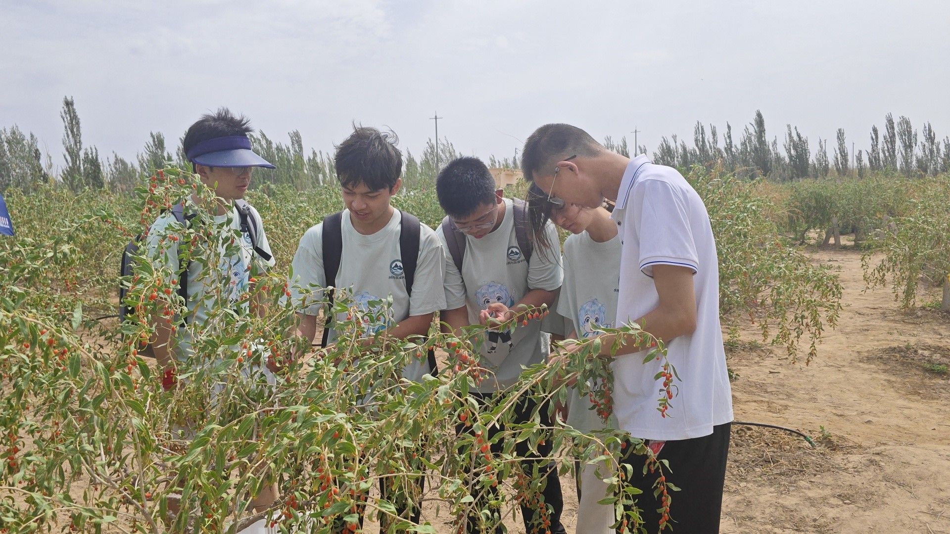 产业擎旗,乡村振兴展宏图。踏入菊花台庄园枸杞种植基地,队员在与工作人员的交流中了解到枸杞从采摘、清洗、烘干到分级、包装的全加工流程,基地初步形成了企业带动产业、产业联结乡村的发展模式,常年为周边村民提供稳定就业岗位,夯实特色产业根基。在产业园区,实践队先后调研走访上能电气(宁夏)有限公司、伊兴羊绒有限公司、中核(宁夏)同心防护科技有限公司等,了解企业的业务范围、生产流程和核心产品等。据介绍,产业园区通过开展村企合作和结对帮扶,不断拓宽就业岗位,帮助村民在家门口实现就业。