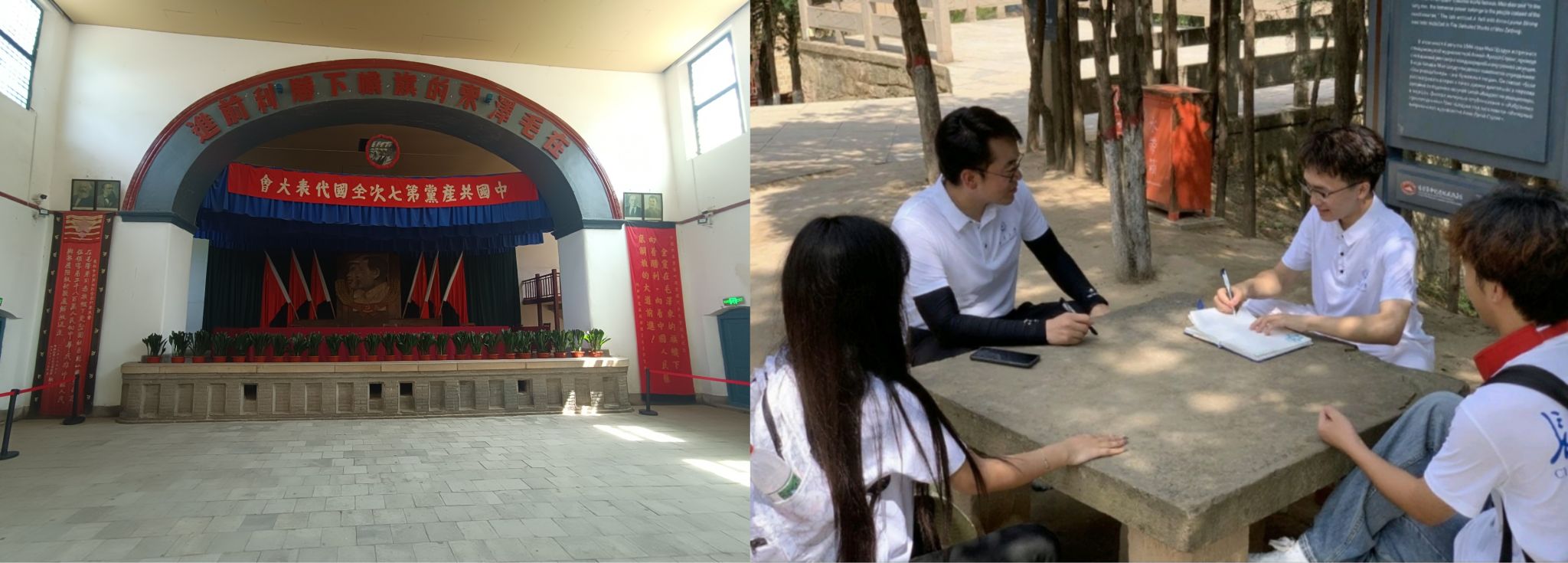 中共七大旧址(左) 李金洋老师讲解抗战历史(右)