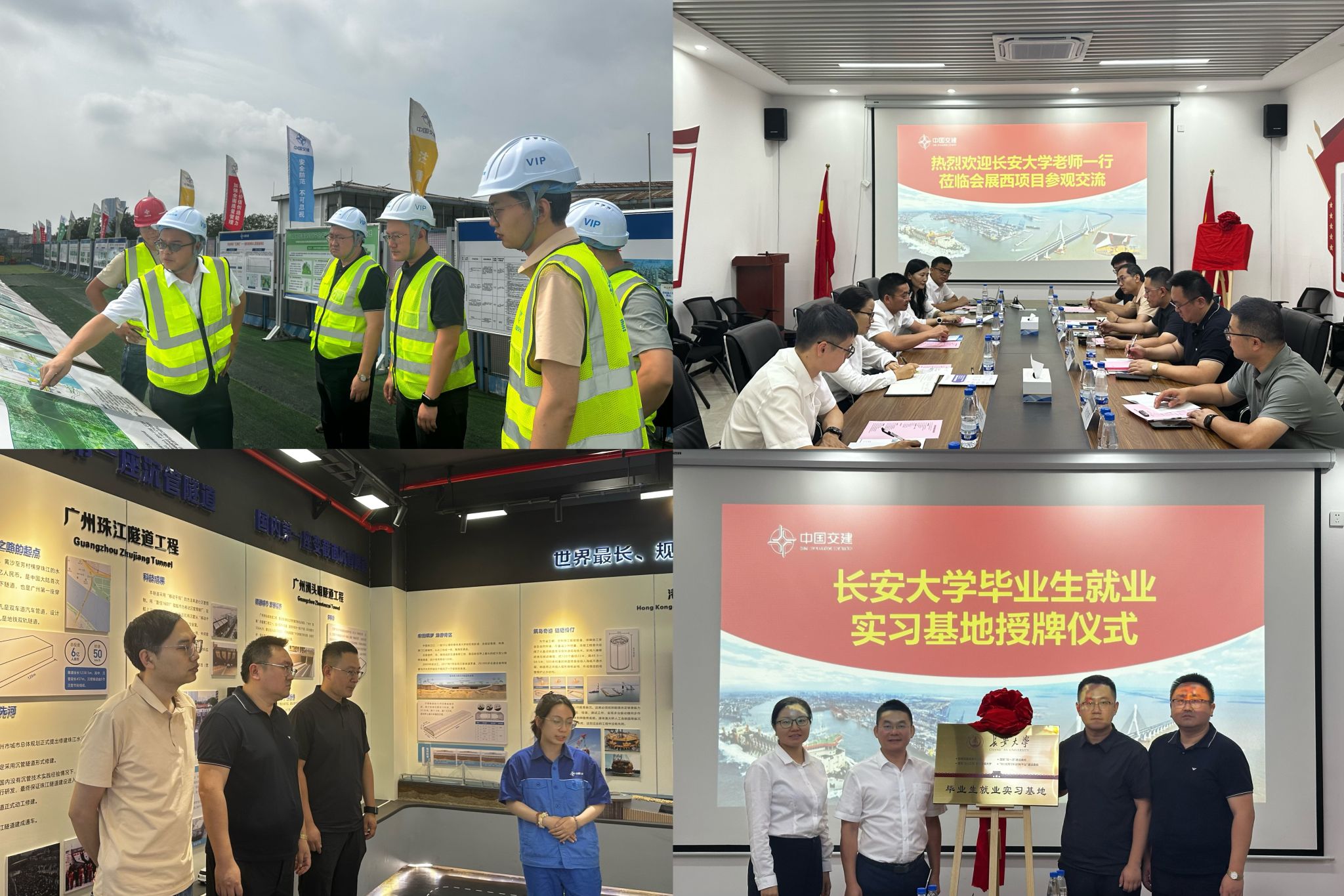 7月30日,贾历波、雷剑一行前往由中交四航局第二工程有限公司承建的广州会展西路过江隧道项目,参观项目干坞预制现场,在沉管隧道科普馆了解项目施工工艺与沉管技术创新。座谈交流会上,中交四航局二公司总工程师梁邦炎对c7网页版一行表示热烈欢迎,并介绍了公司基本情况、标志性成果及专业人才需求。双方还就校企合作意向、校友交流及学生实习实践等事宜进行了沟通。会后,贾历波、雷剑向中交四航局二公司授予“c7网页版毕业生就业实习基地”牌匾。