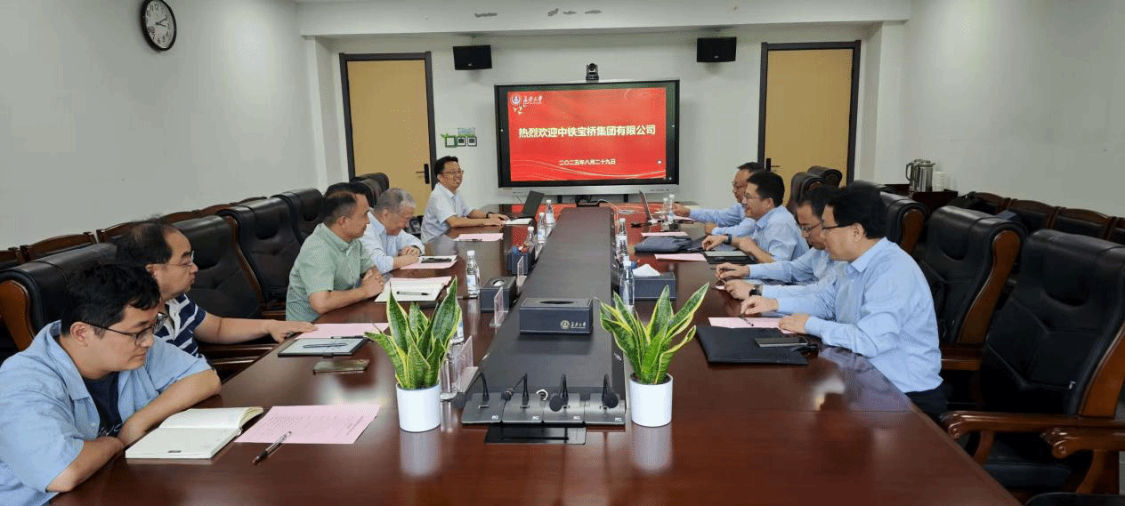 8月29日下午,中铁宝桥集团有限公司副总经理黄鑫一行莅临c7网页版,双方围绕深化校企合作、推动产学研用深度融合等议题深入洽谈。校国际合作与交流处原处长徐岳、实验室与设备管理处处长赵煜、公路学院副院长韩万水等参加座谈。