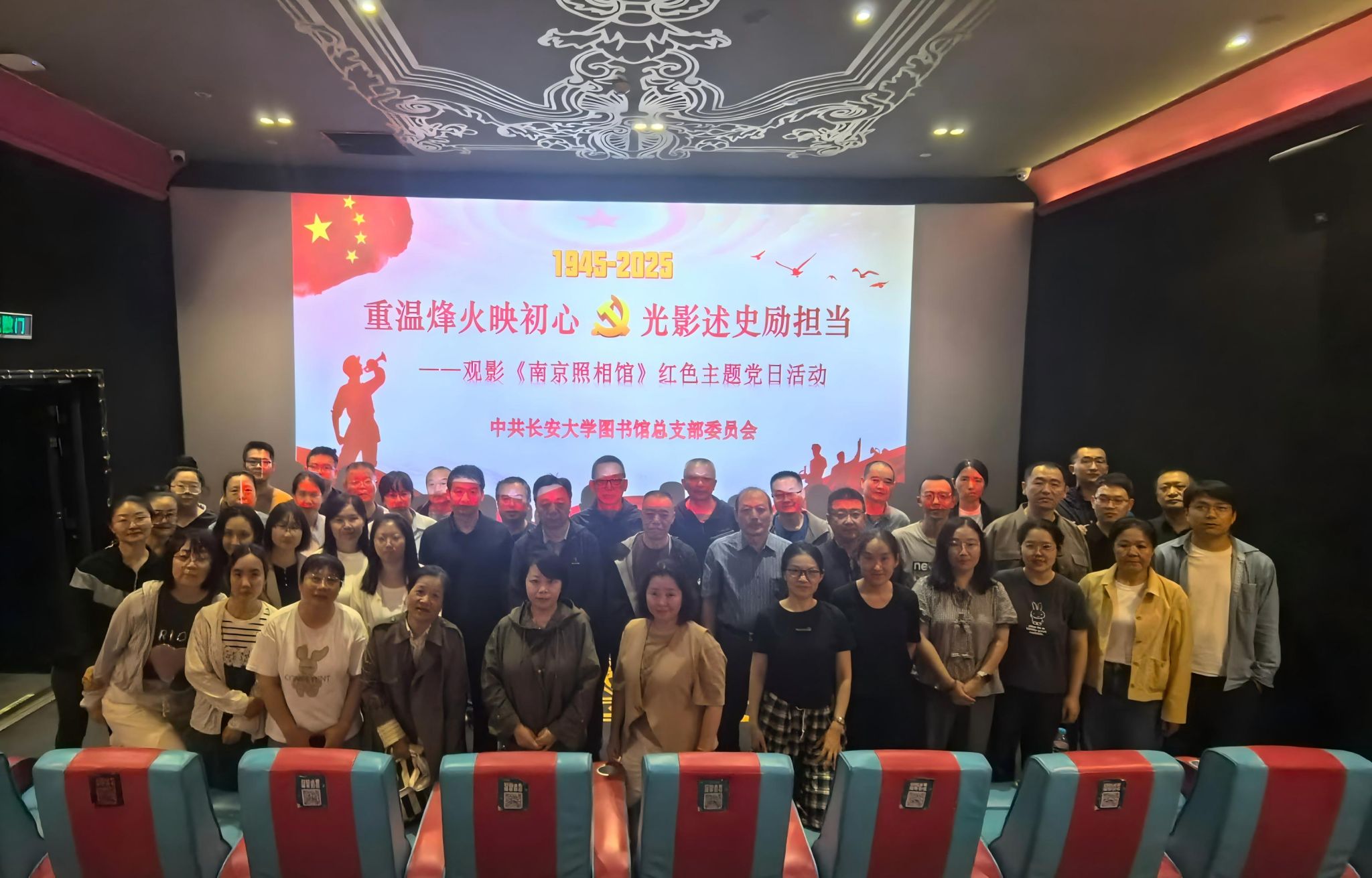 在中国人民抗日战争暨世界反法西斯战争胜利80周年纪念日之际,为大力弘扬伟大抗战精神,厚植馆员爱国情怀,9月5日下午,图书馆党总支开展“重温烽火映初心 光影述史励担当”《南京照相馆》观影主题党日活动,全体党员、民主党派、馆员群众共同参加活动。