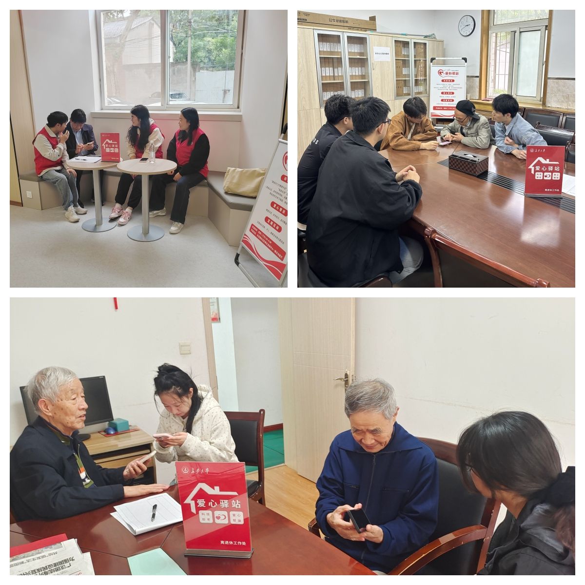 爱心驿站运用老少结对方式,在各住宅区活动室每周二定期开放,提供爱心帮扶、科技助老、“智能生活”线下咨询、定期活动等服务。学生志愿者帮助老同志使用“离退休工作管理平台”,手把手辅导养老保险认证、导航、点餐等软件的使用,“一对一”指导电脑、智能手机的操作。本学期爱心驿站还将联合社会养老机构开展健康讲座、安全知识普及、手工制作等丰富多彩的活动。