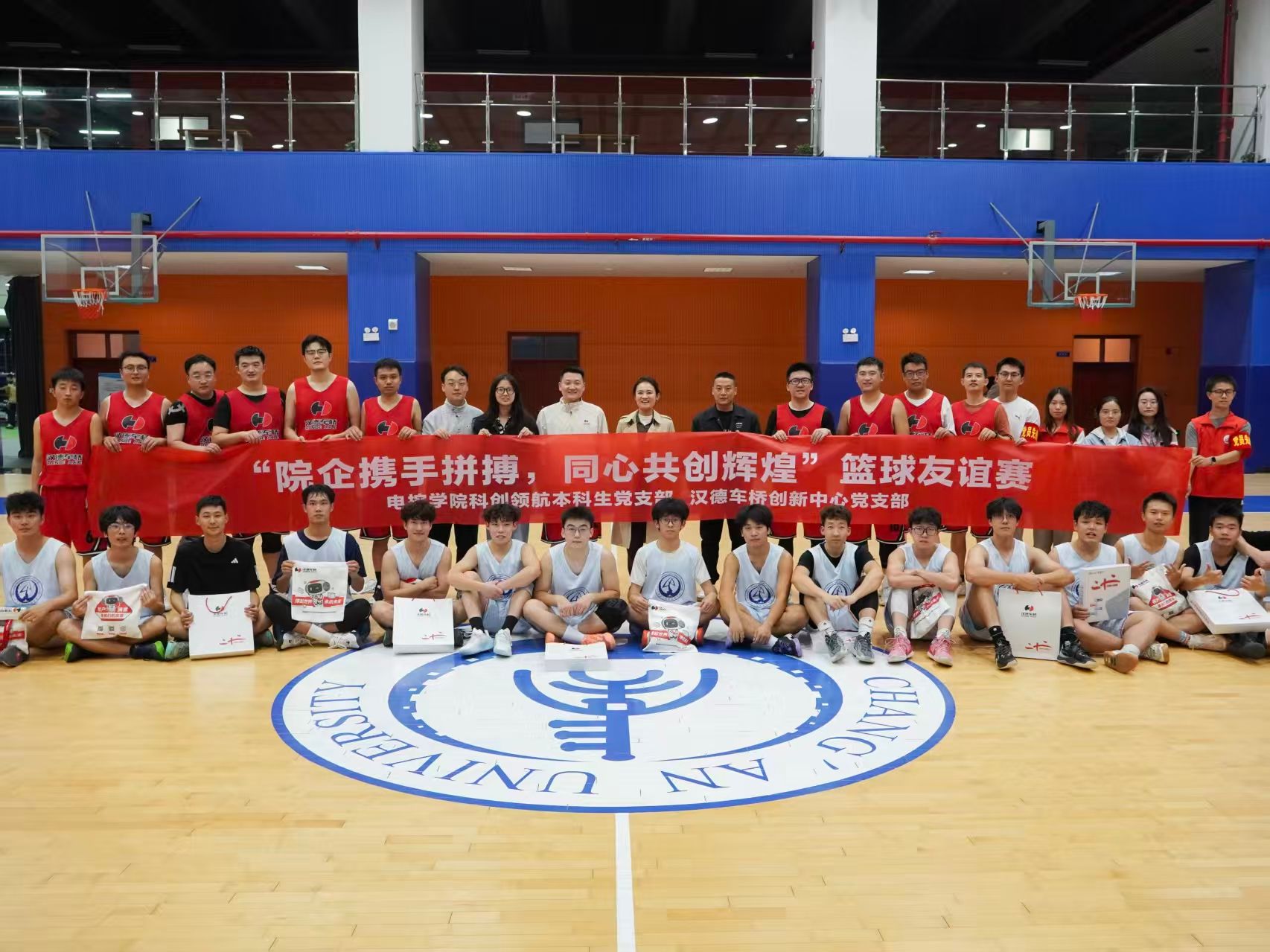 10月16日,电控学院联合汉德车桥在北校区乾健馆开展“院企携手拼搏 同心共创辉煌”篮球友谊赛。学院党委副书记高婷婷、汉德车桥团委书记赵冲、学办全体辅导员老师、院企共建党支部科创领航本科生党支部与汉德车桥创新中心党支部党员参赛。