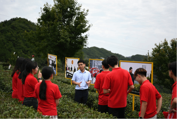 7月12日,实践队前往陕西省安康市平利县蒋家坪村展开主题调研活动。抱着绿水青山,因茶致富,蒋家坪村迎来山乡巨变。此次调研活动也以这一叶绿色为依,从讲故事、进工厂、品茶园三个主要部分展开。实践队首先跟随带队老师,来到蒋家坪村前村主任办公室听述脱贫初期的故事。其中最为牵动人心的是一步一个脚印走出这万亩茶园的不放弃以及在受伤后的一次又一次的坚守。在此之前,队员们都不曾想到这万亩茶园的前身是一片被荒芜的土地,背后是一段不知前路茫茫,依旧为了脱贫致富“摸黑走”的探索。随后,在主任的带领下实践队参观了当地的茶叶加工车间,参观了解了绿茶、红茶、乌龙茶制作的工艺区别,以及如杀青、烘干、发酵等制茶工序的具体进行过程。途经一棵古树,队员在与当地村民交谈中得知,这棵古树是当地特色标识打卡点“千年古茶树”,可以吸引游客前来拍照打卡。在告别村主任后,实践队前往当地茶山,参观万亩茶园,走习近平总书记走过的路,感受蒋家坪村历史悠久的茶乡文化。